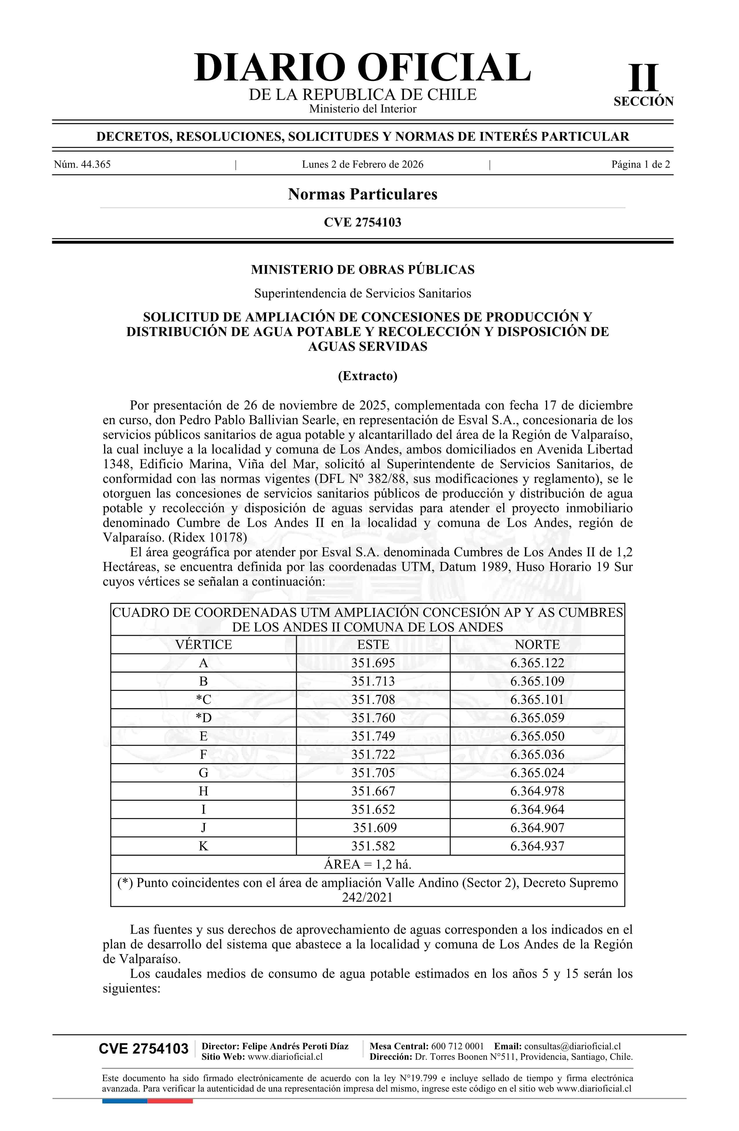 Título: Solicitud de ampliación de concesiones de producción y distribución de agua potable y recolección y disposición de aguas servidas