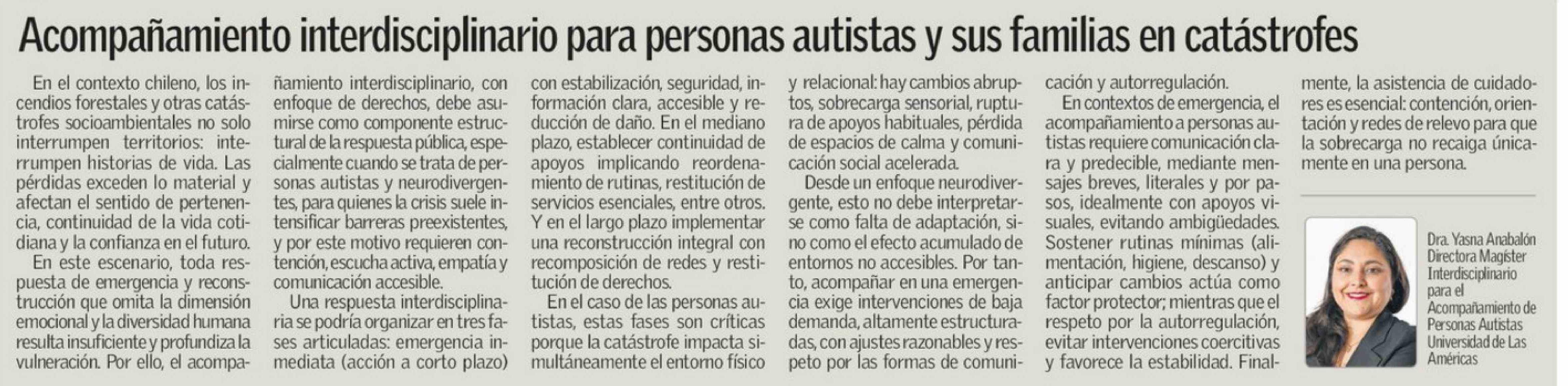 Acompañamiento interdisciplinario para personas autistas y sus familias en catástrofes 11-02-2026 El Sur |