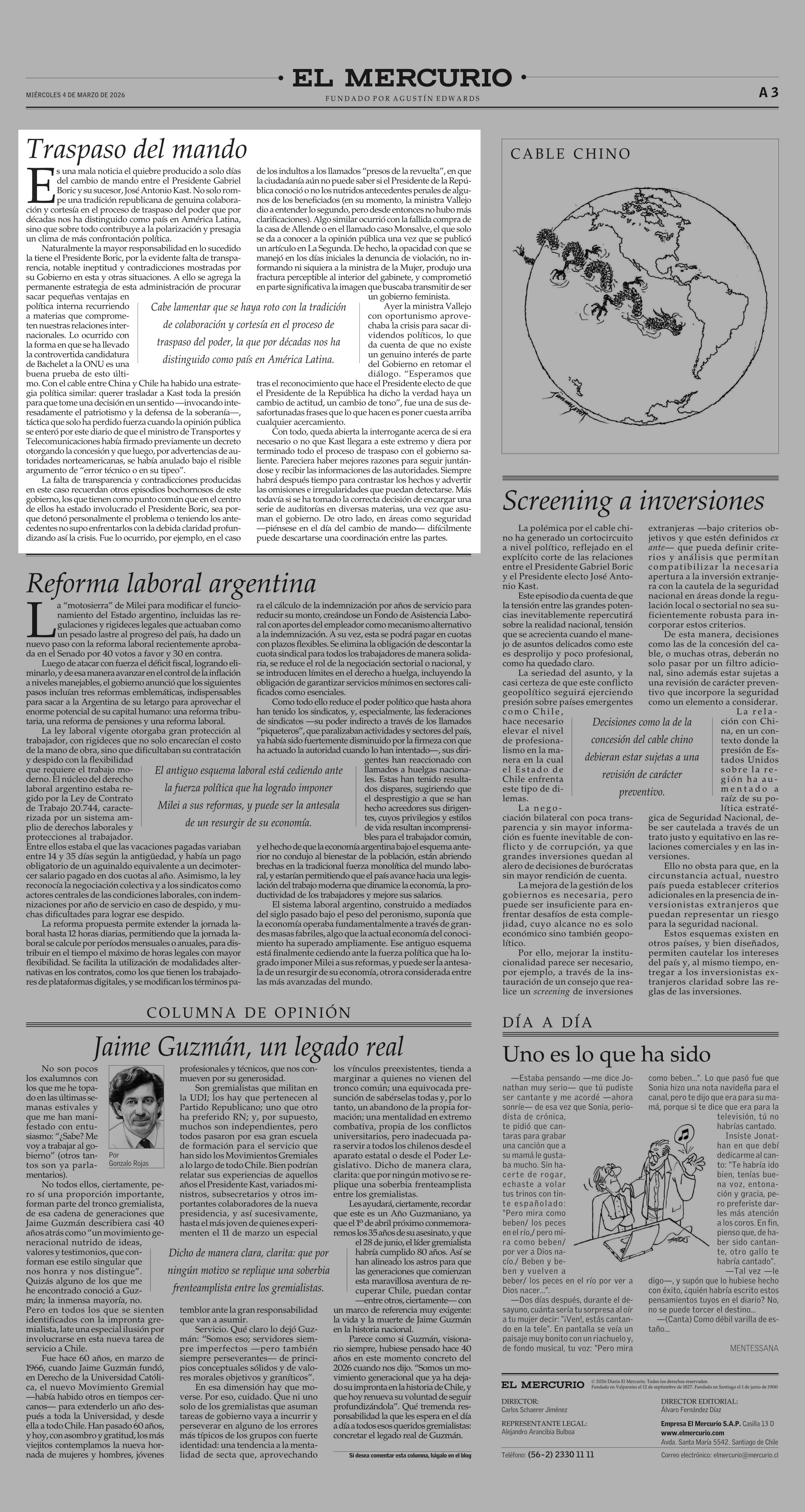 Editorial: Traspaso del mando 04-03-2026 El Mercurio |
