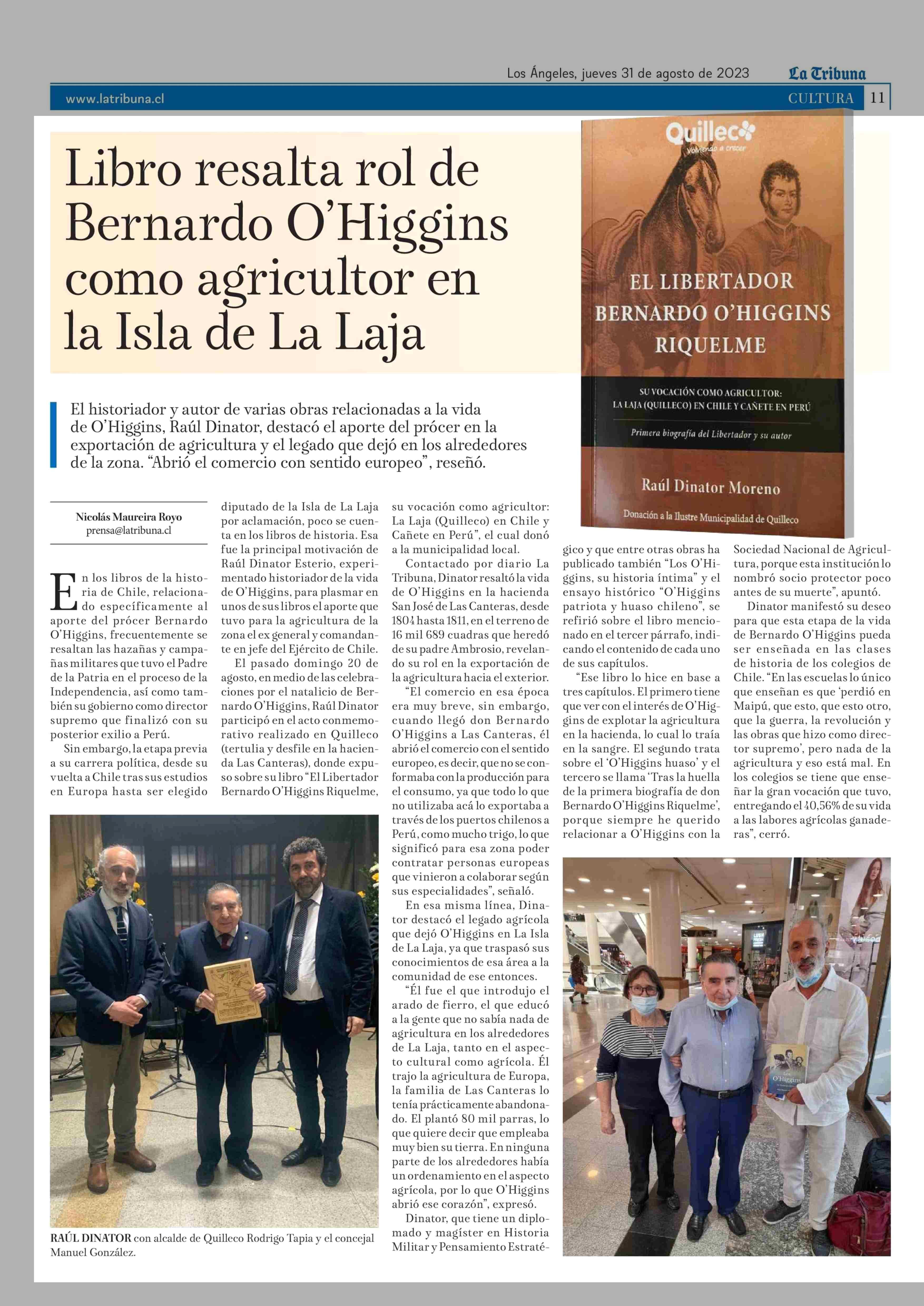 Libro resalta rol de Bernardo O Higgins como agricultor en la Isla de La Laja 31-08-2023 La Tribuna |