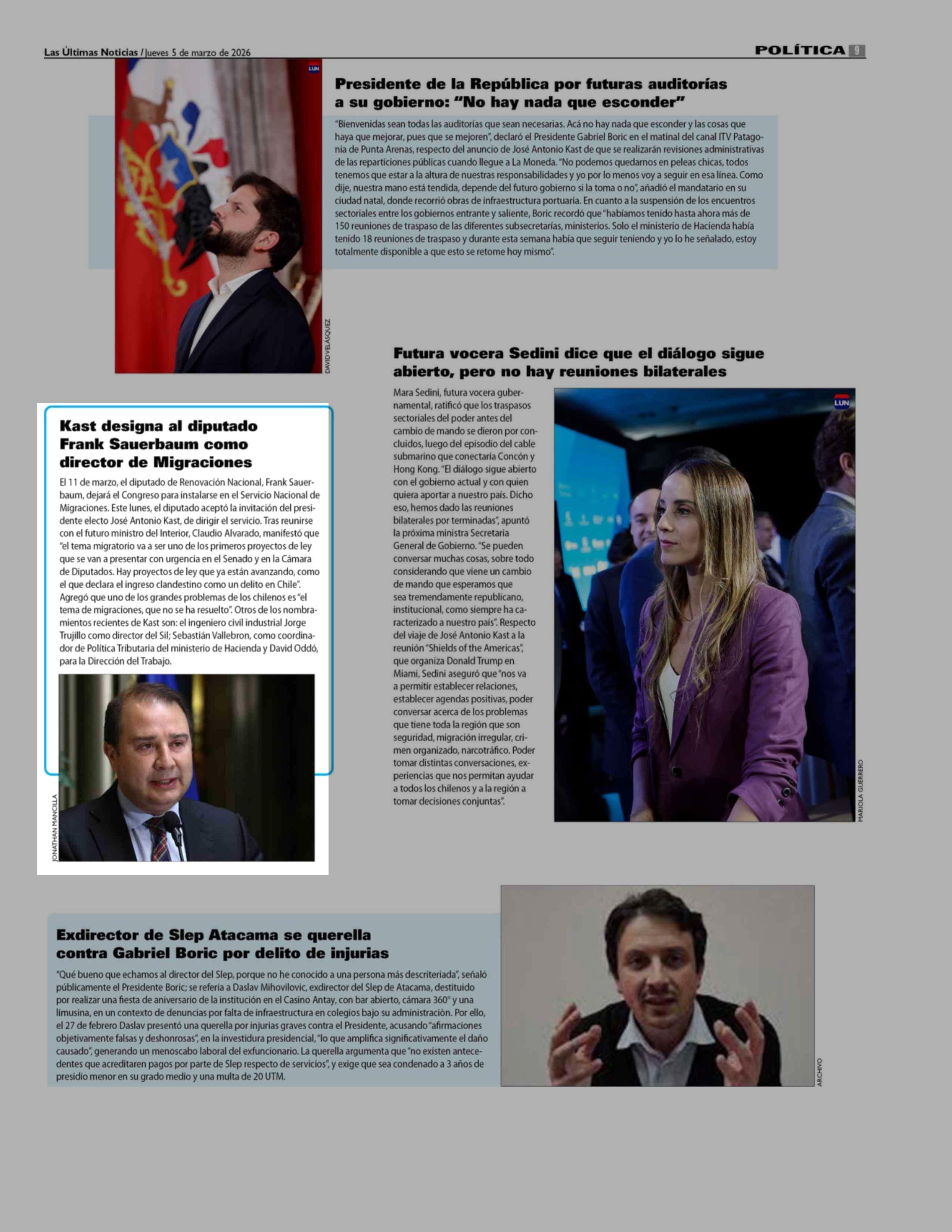 Kast designa al diputado Frank Sauerbaum como director de Migraciones 05-03-2026 Las Últimas Noticias |