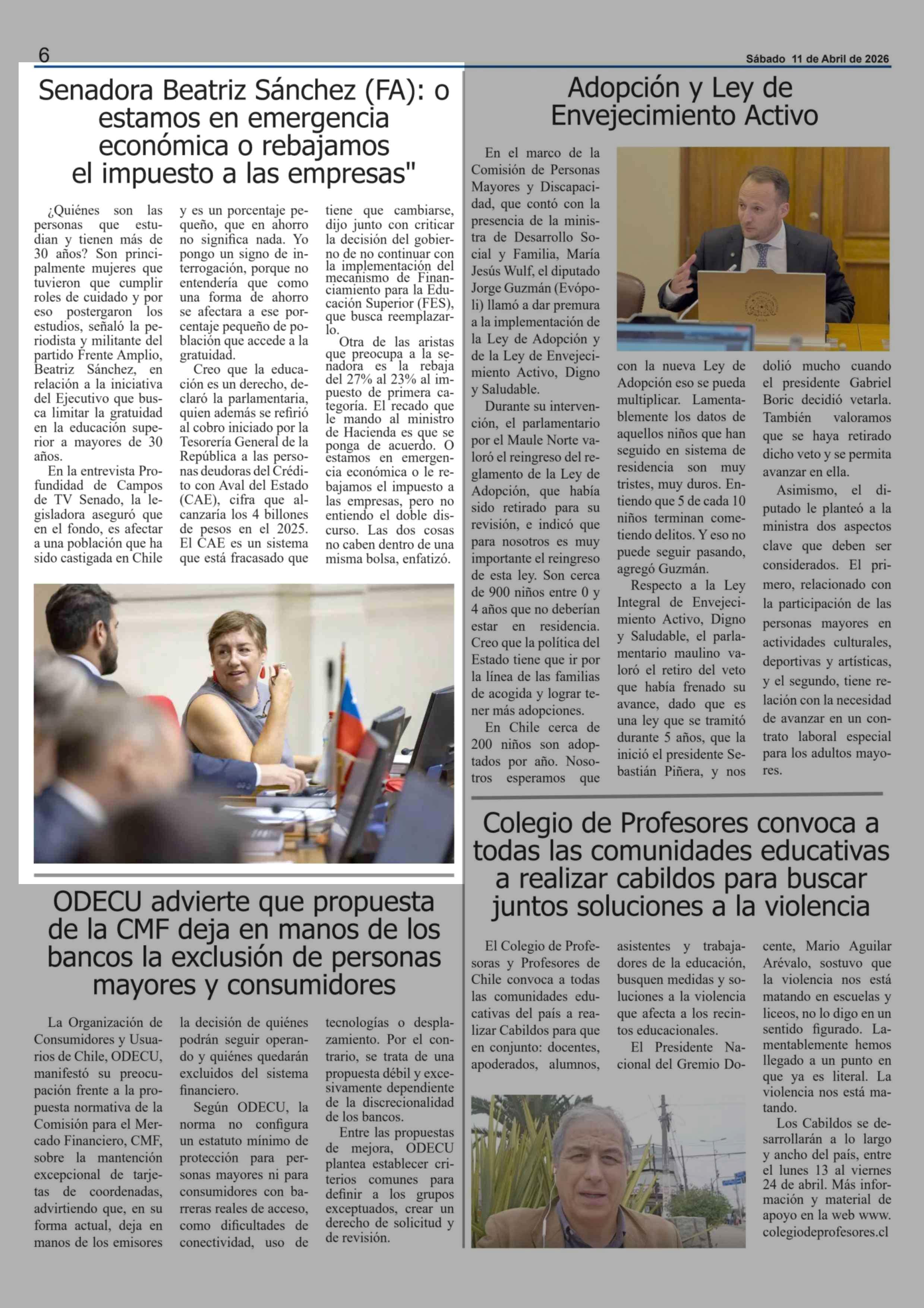 Senadora Beatriz Sánchez (FA): o estamos en emergencia económica o rebajamos el impuesto a las empresas" 11-04-2026 El Heraldo |