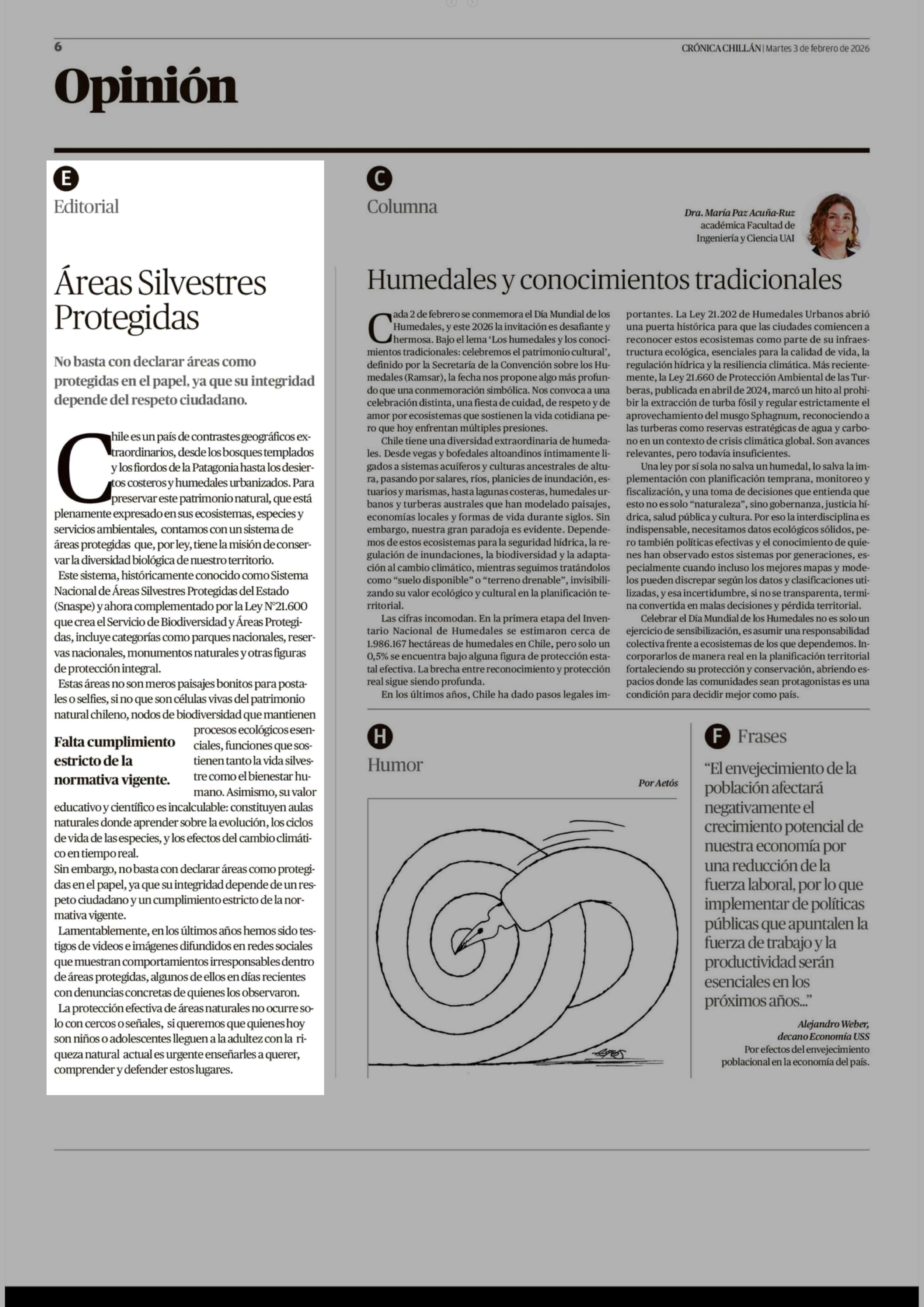 Editorial: Áreas Silvestres Protegidas 03-02-2026 Crónica de Chillán |