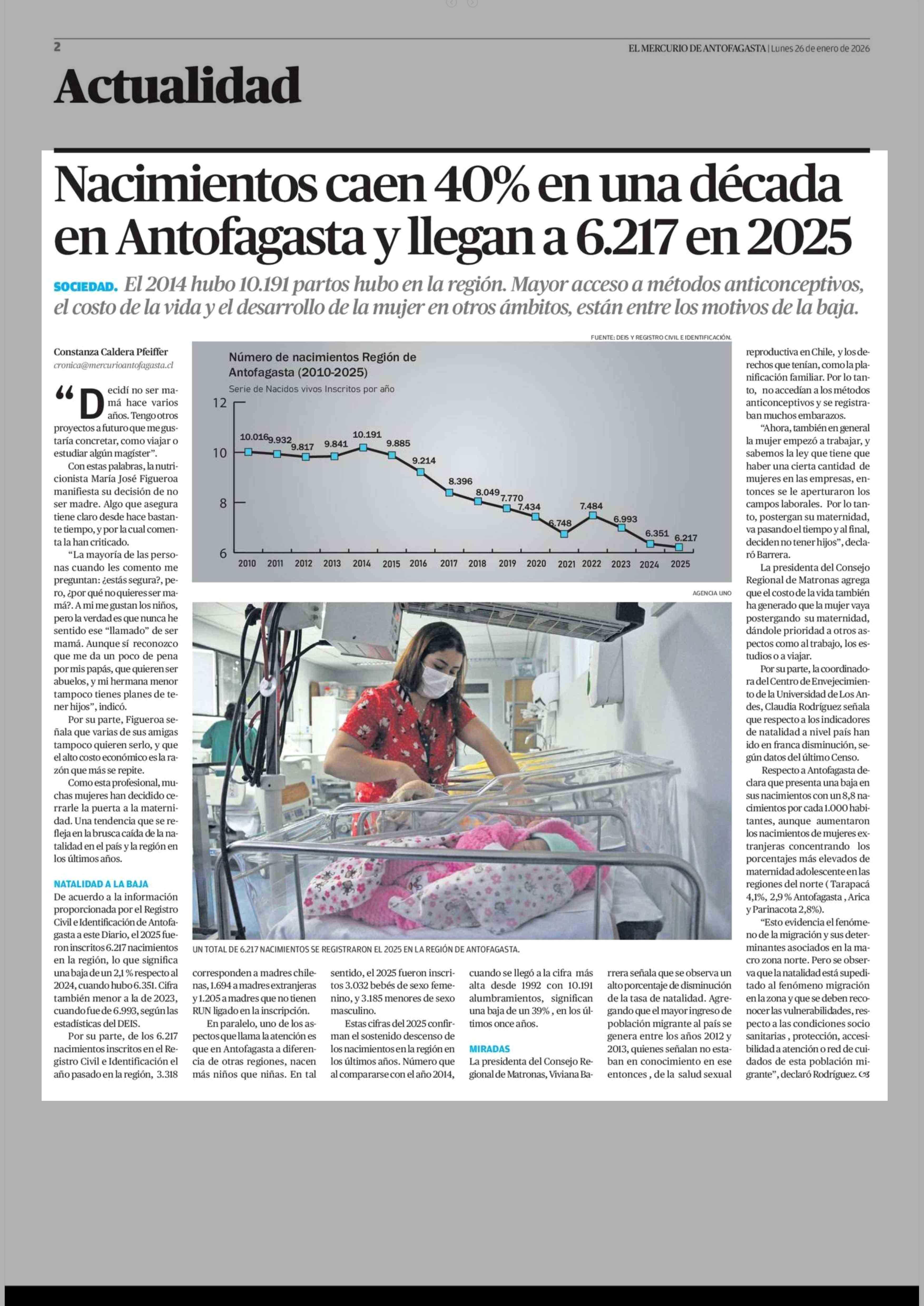 Título: Nacimientos caen 40% en una década en Antofagasta y llegan a 6.217 en 2025
