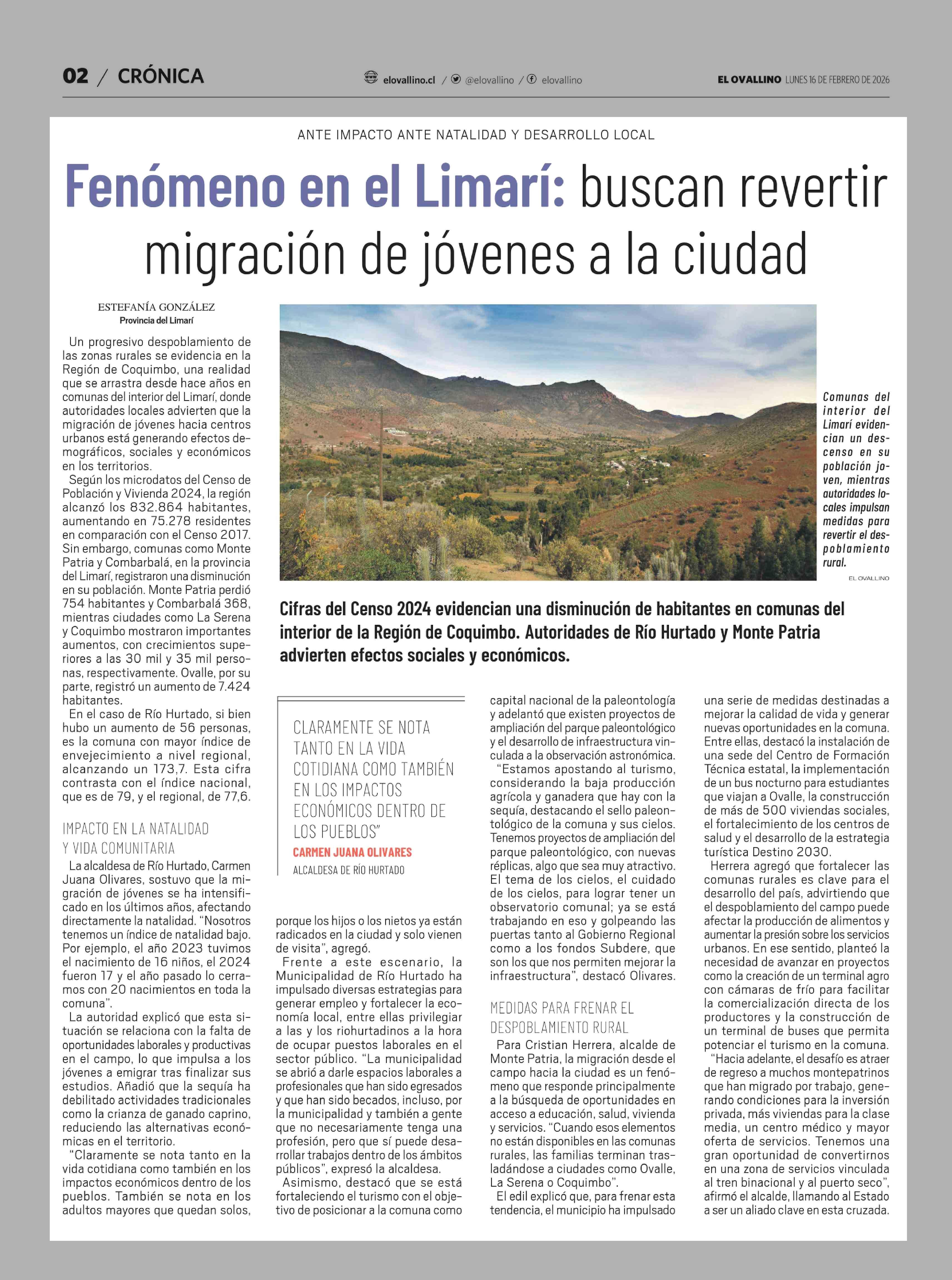 Fenómeno en el Limarí: buscan revertir migración de jóvenes a la ciudad 16-02-2026 El Ovallino |