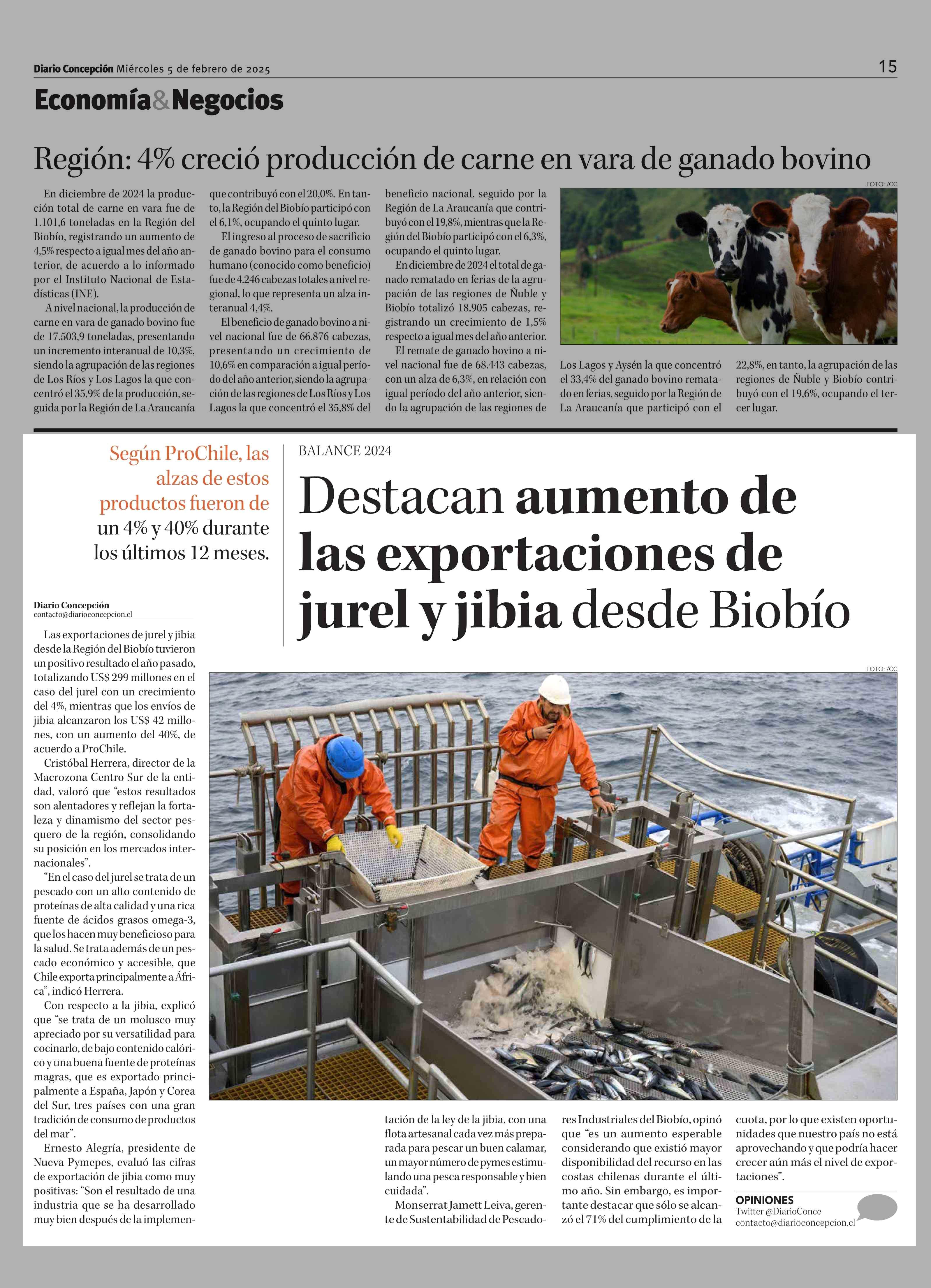 Destacan aumento de las exportaciones de jurel y jibia desde Biobío 05-02-2025 Diario Concepción |