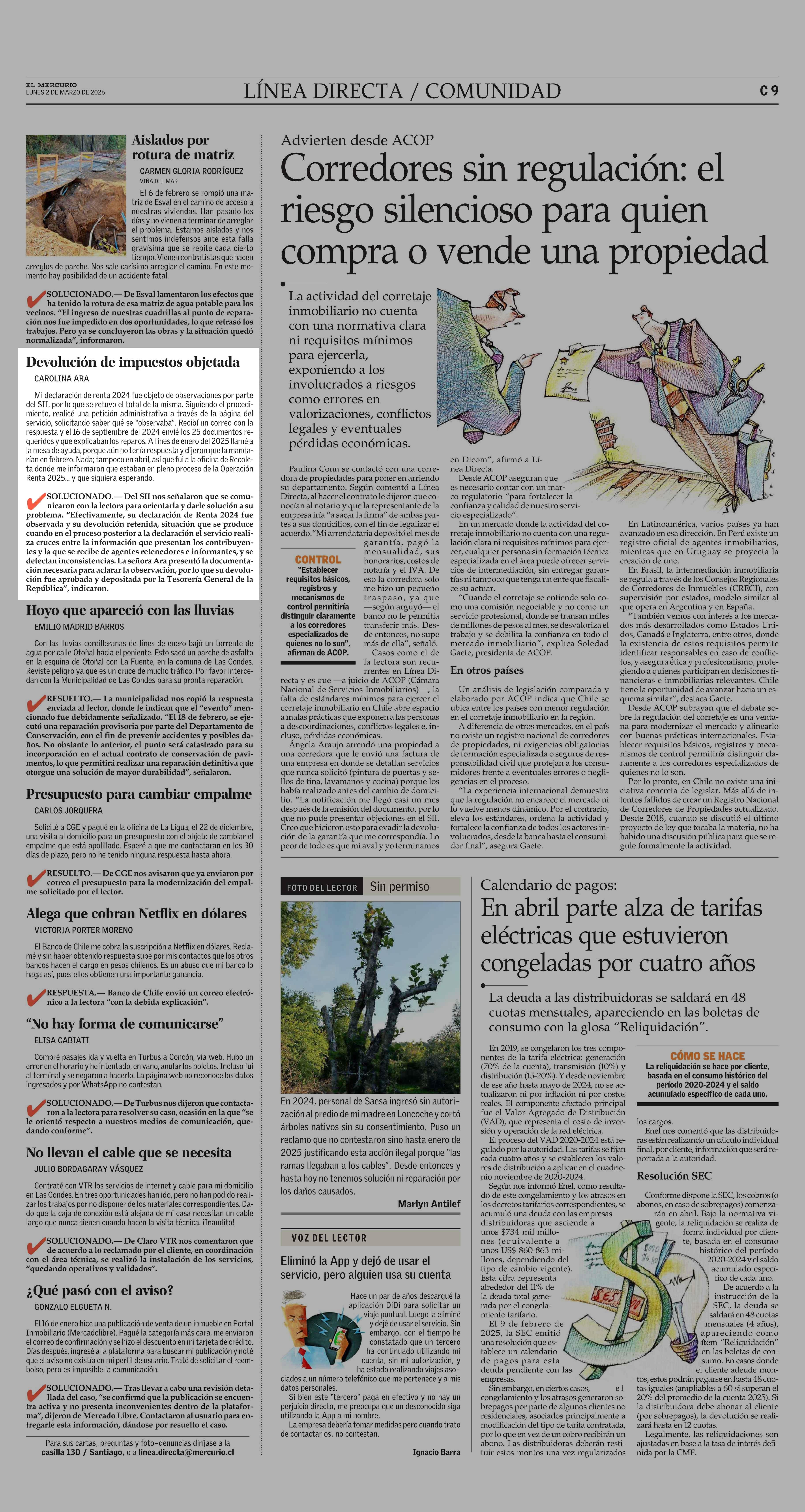 Devolución de impuestos objetada 02-03-2026 El Mercurio |