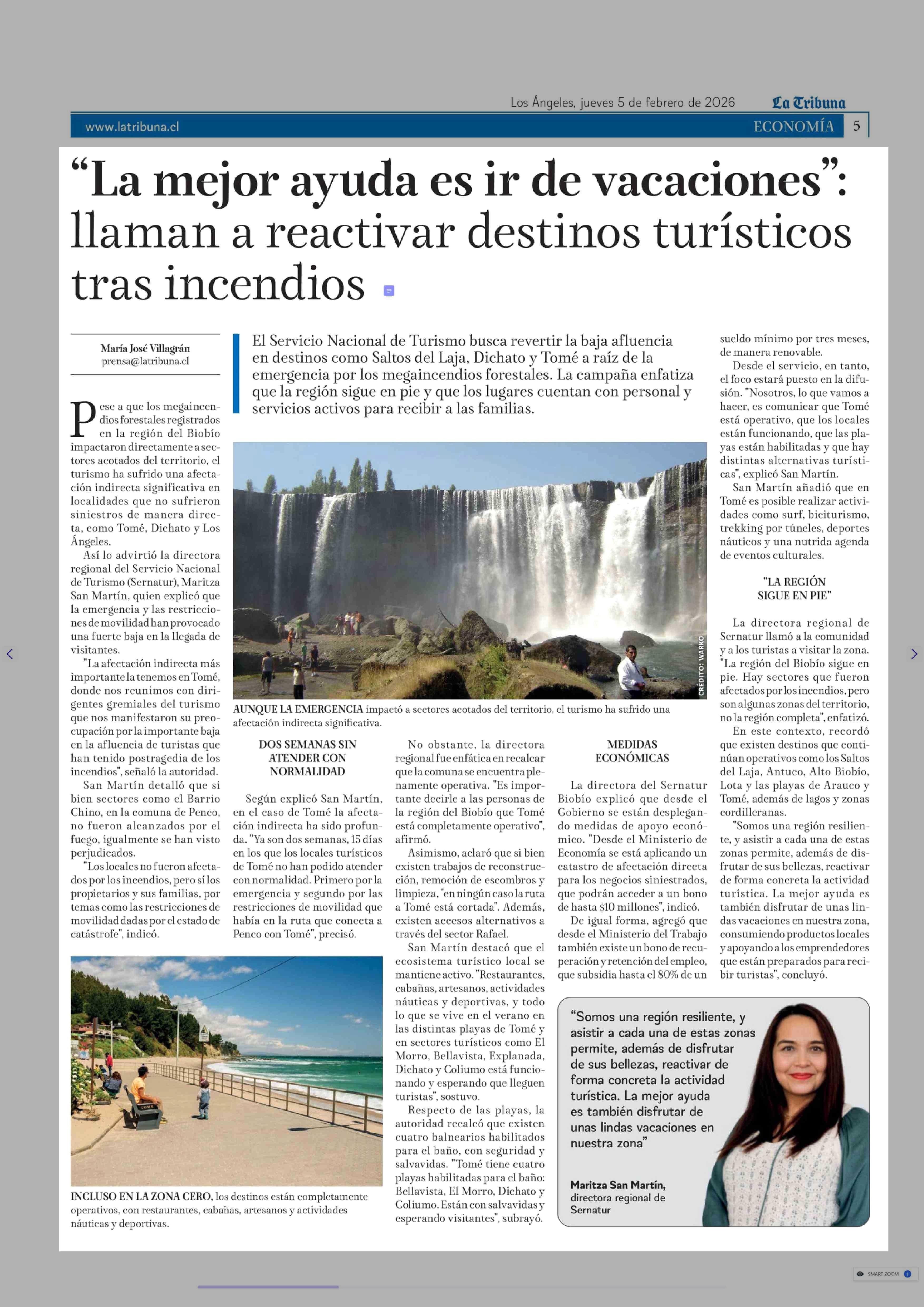 "La mejor ayuda es ir de vacaciones": llaman a reactivar destinos turísticos tras incendios 05-02-2026 La Tribuna |