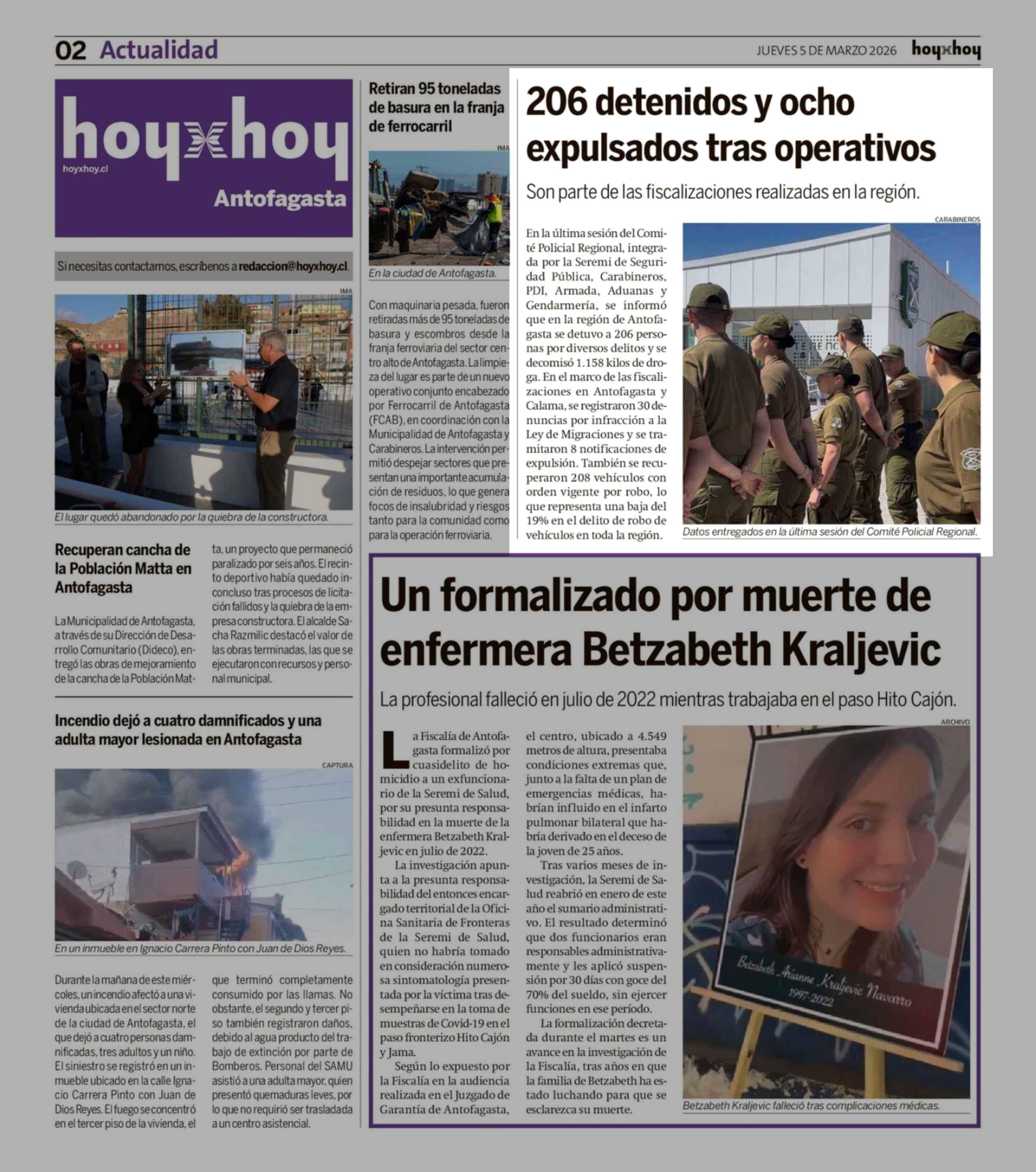 206 Detenidos y ocho expulsados tras operativos 05-03-2026 Hoy x Hoy Antofagasta |