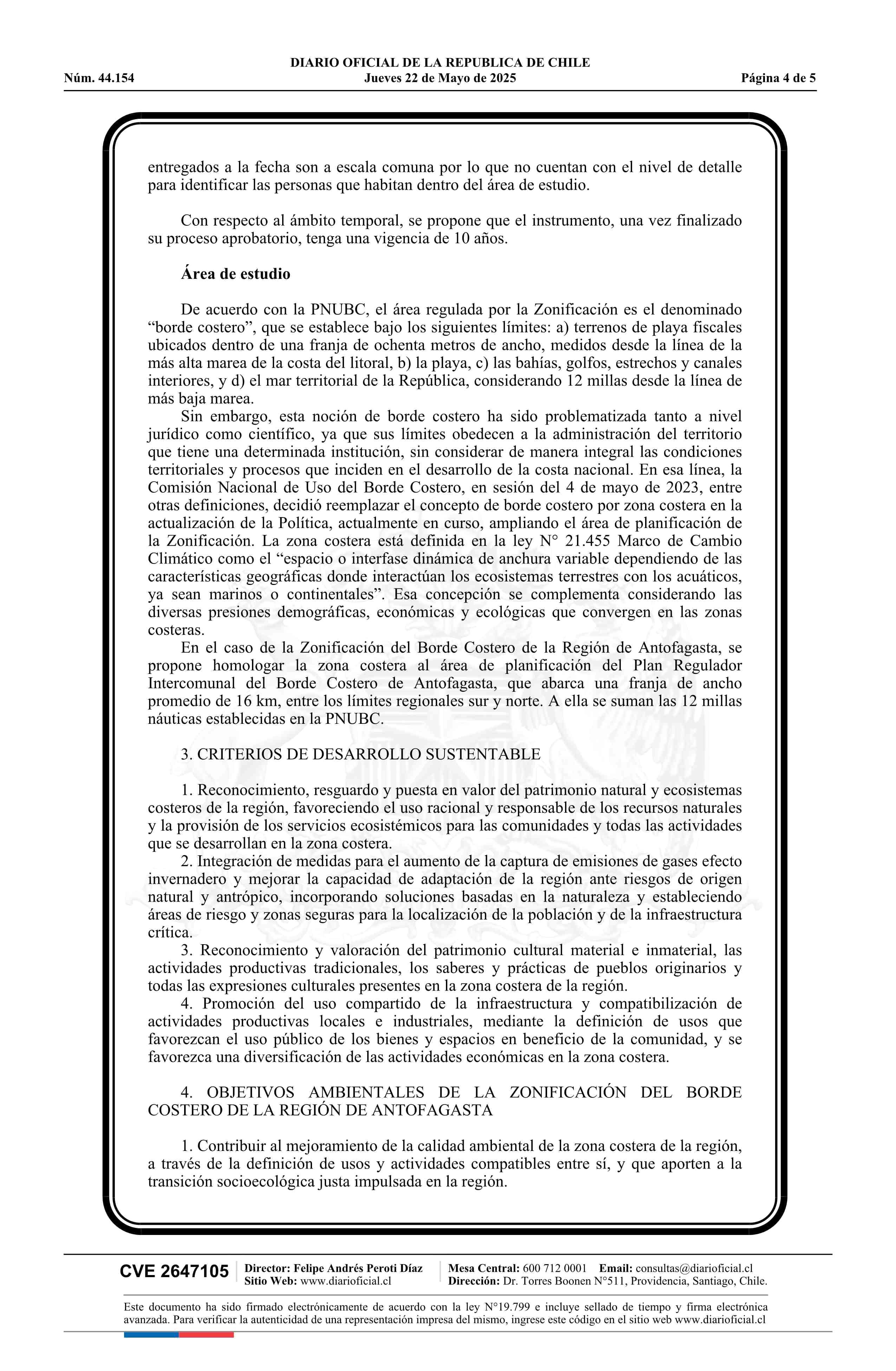 AVISO LICITACIONES: Inicia elaboración de la Zonificación del Borde Costero de la Región de Antofagasta y su Evaluación Ambiental Estratégica 22-05-2025 Diario Oficial Edición Electrónica |