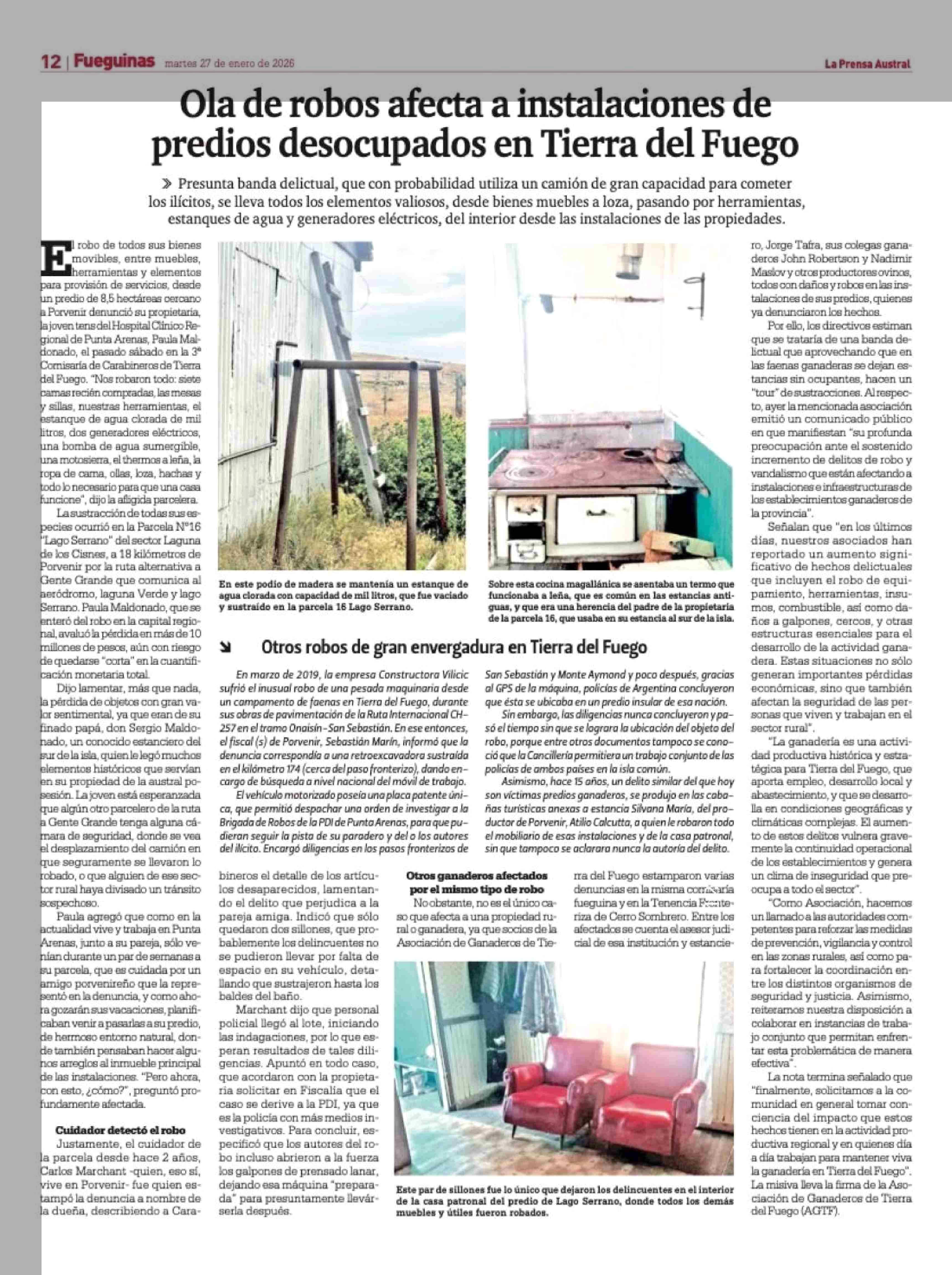 Título: Ola de robos afecta a instalaciones de predios desocupados en Tierra del Fuego