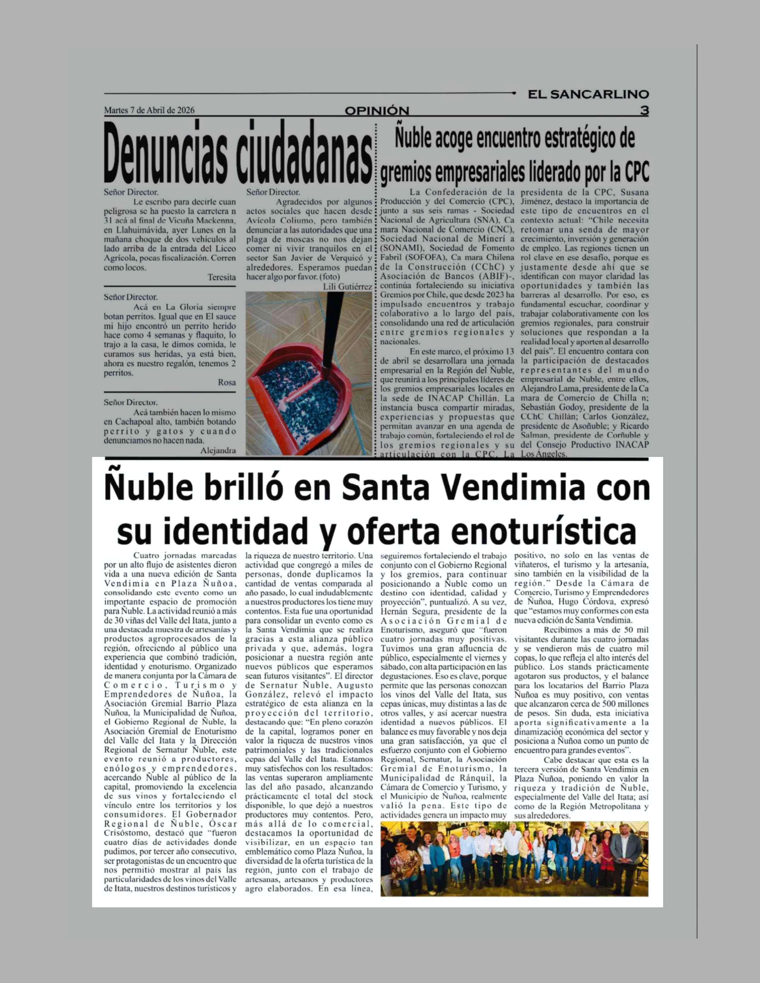 Fecha: 07-04-2026 Sector: Noticia general Región: Región del Ñuble