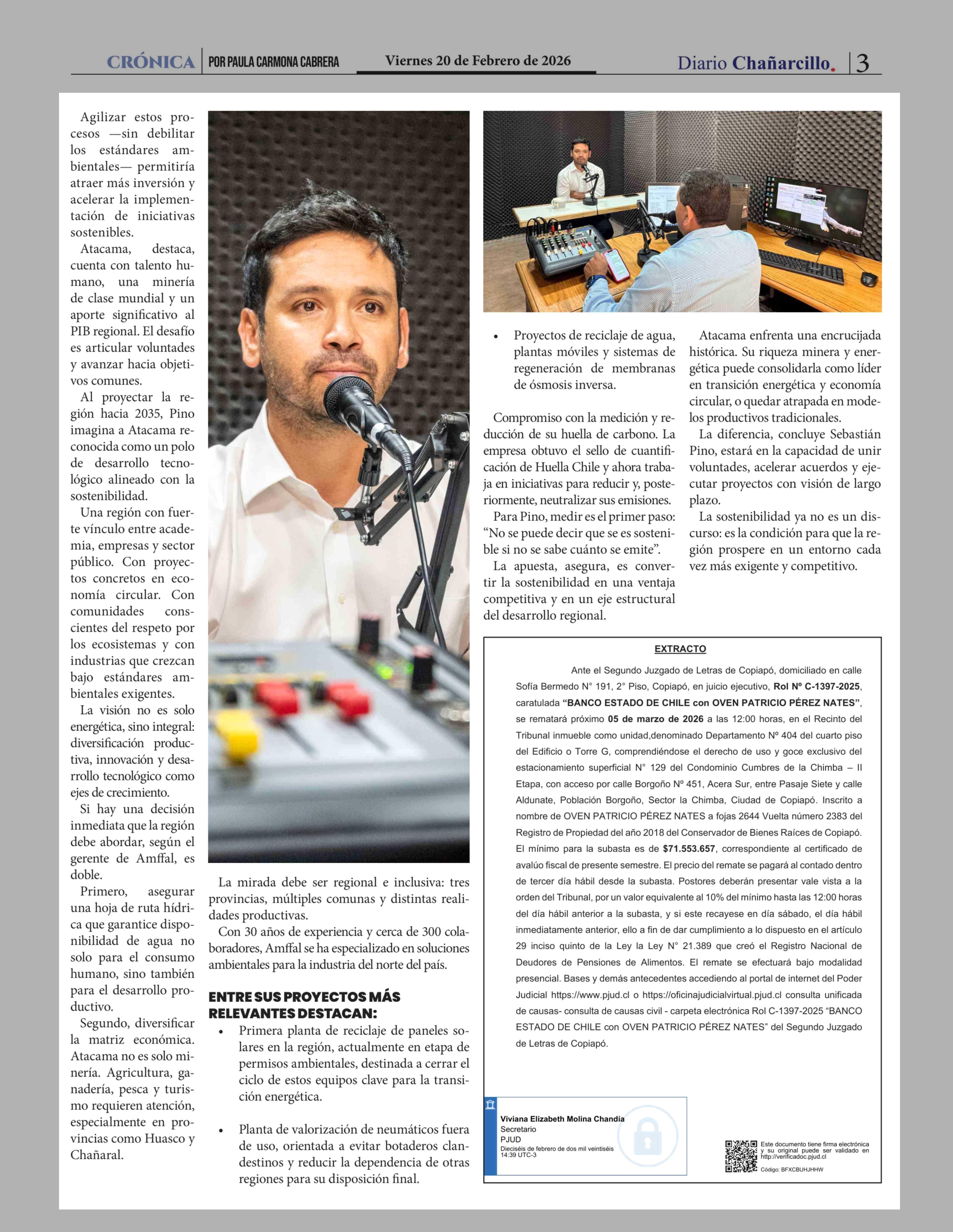 Atacama en punto de inflexión: la apuesta por la sostenibilidad y la economía circular 20-02-2026 Diario Chañarcillo |
