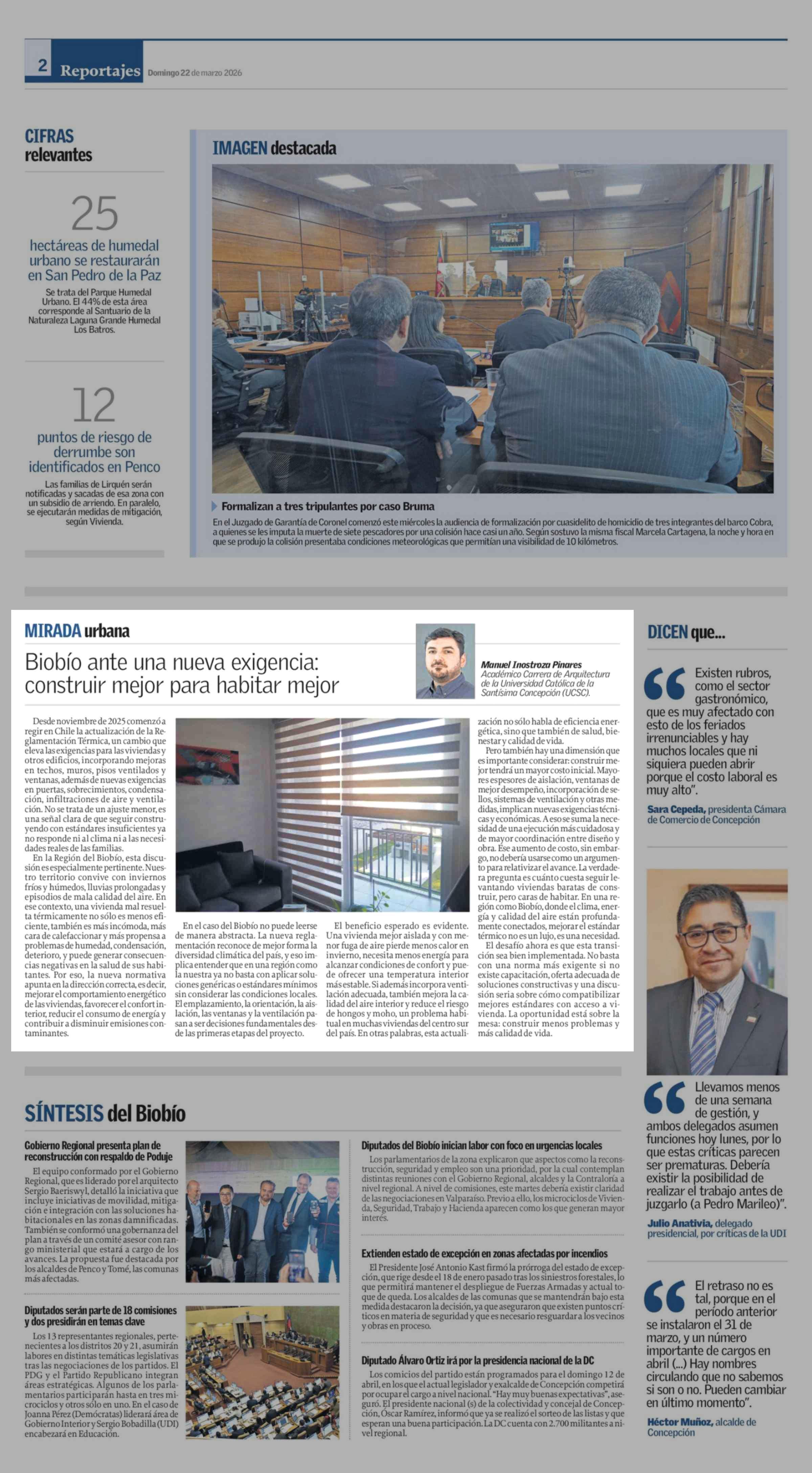Columnas de Opinión: Biobío ante una nueva exigencia: construir mejor para habitar mejor 22-03-2026 El Sur |