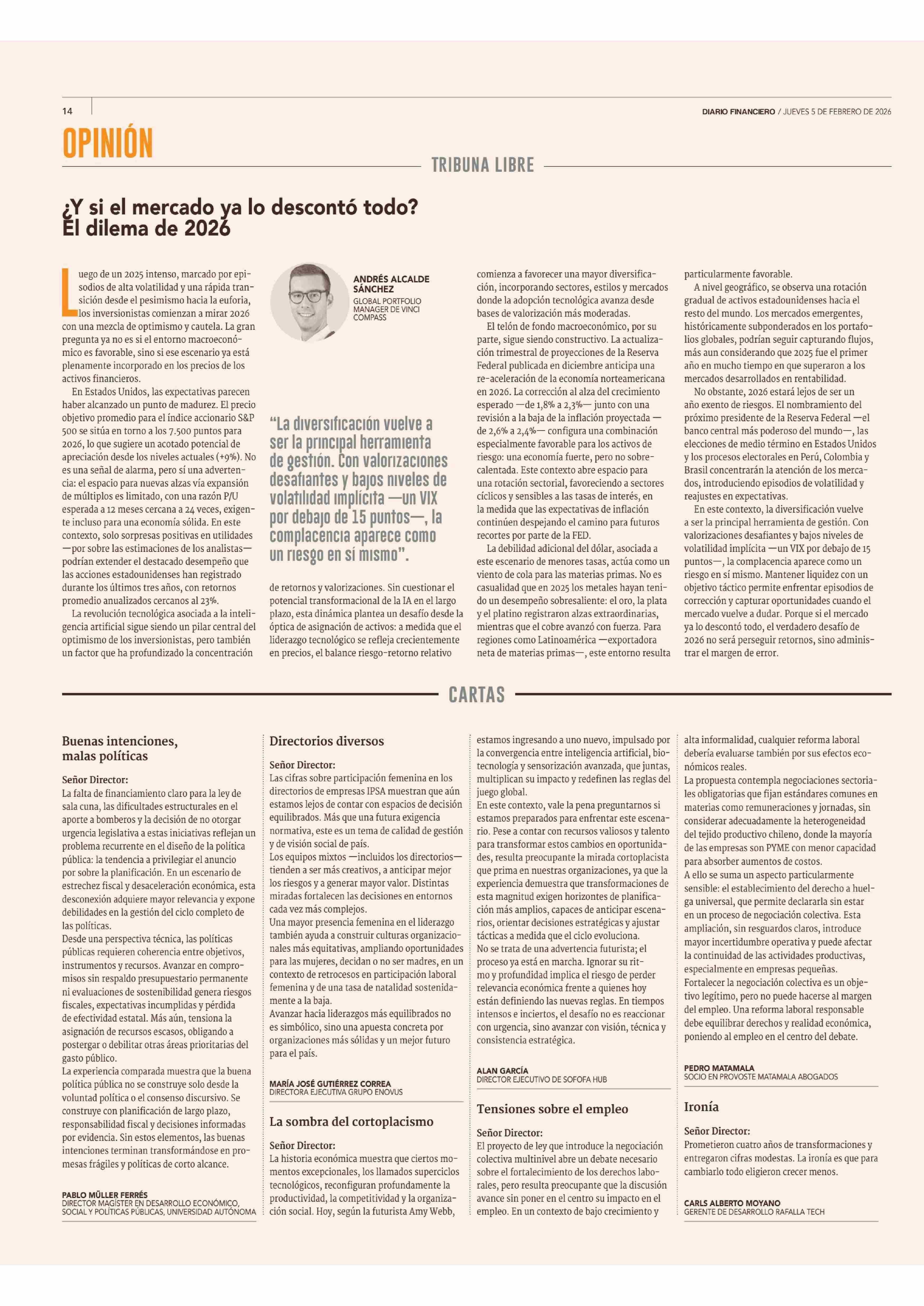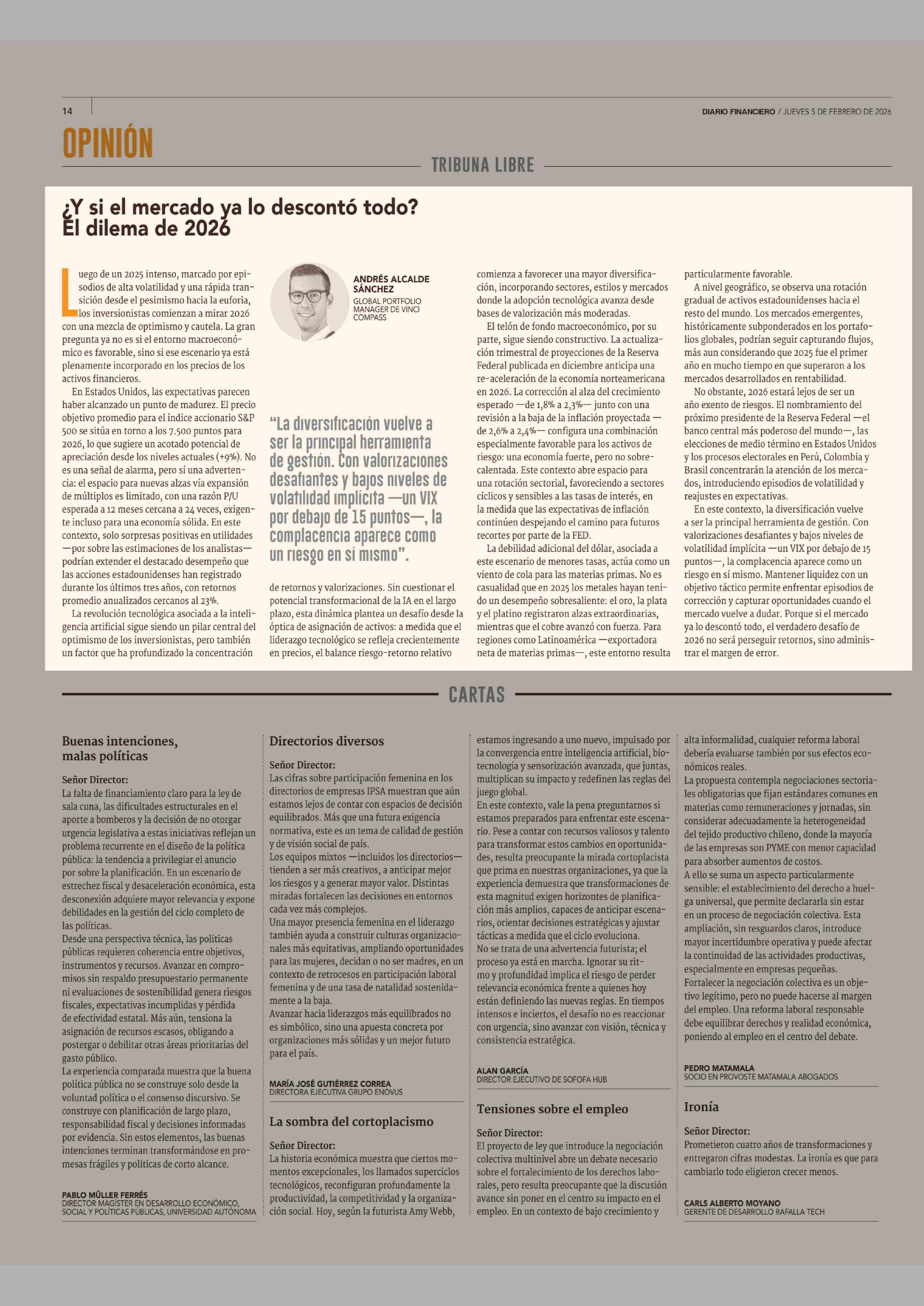 COLUMNAS DE OPINIÓN: ¿Y si el mercado y lo descontó todo? Él dilema de 2026 05-02-2026 Diario Financiero |