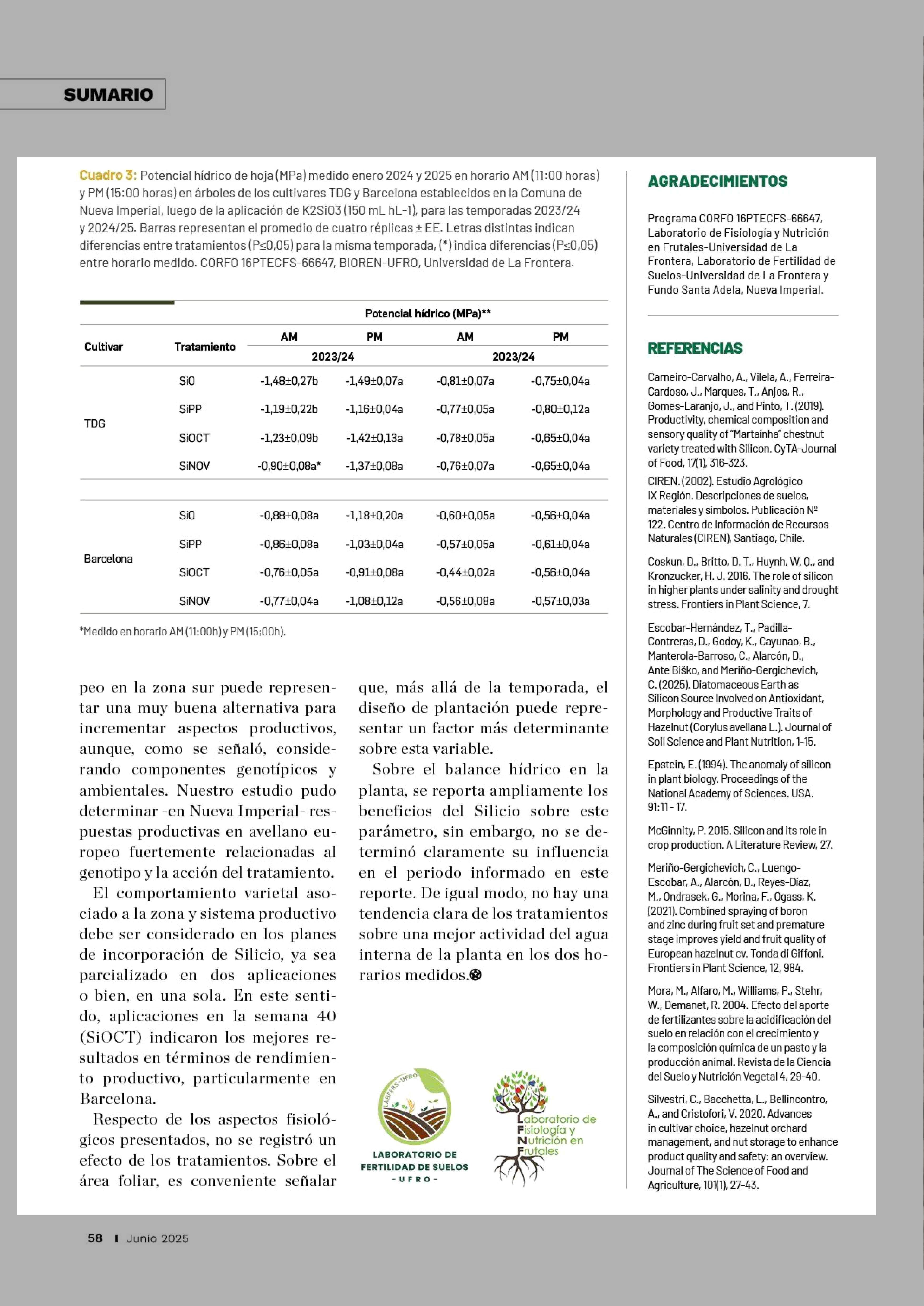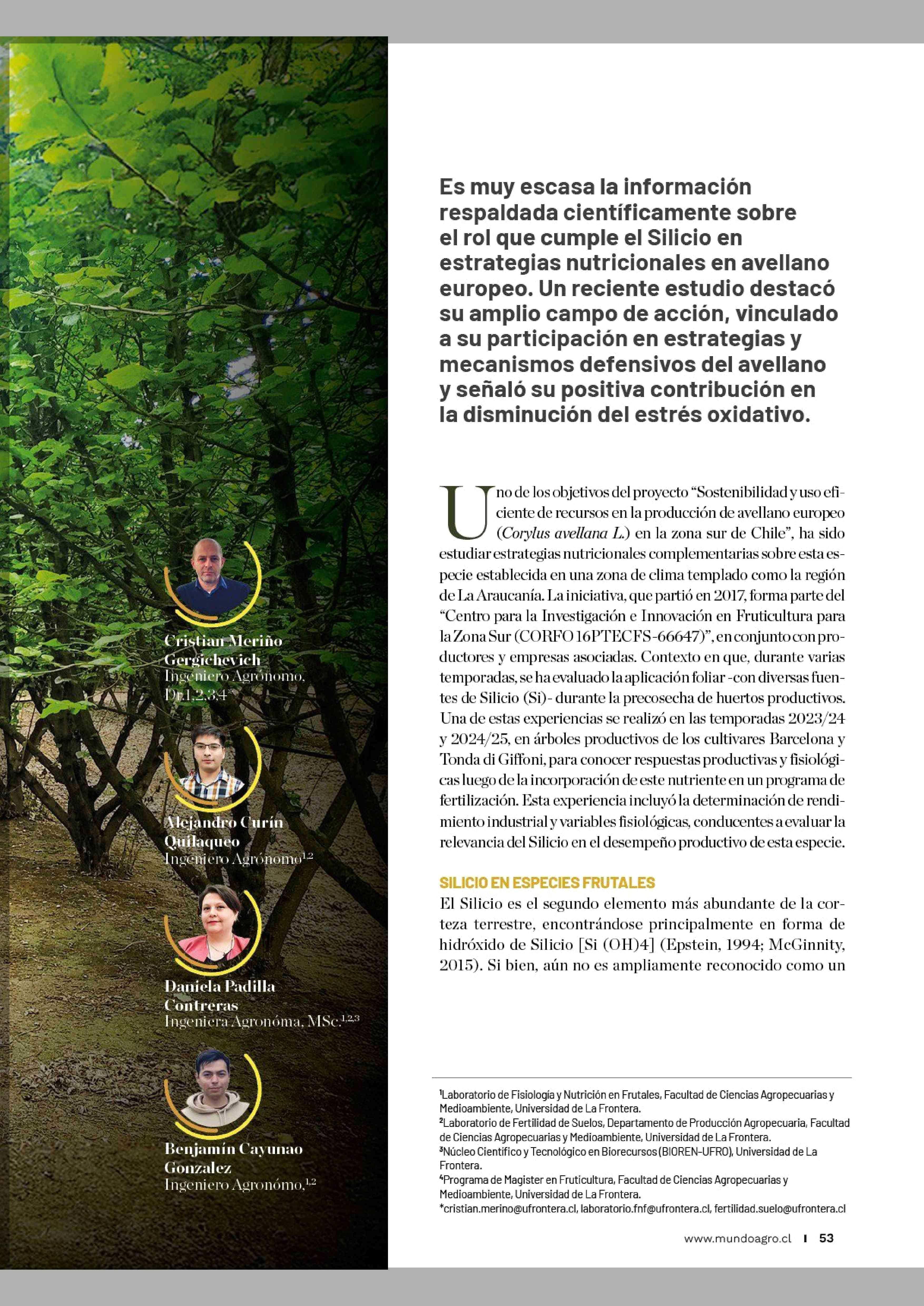 Título: APLICACIÓN FOLIAR DE SILICIO EN AVELANO EUROPEO