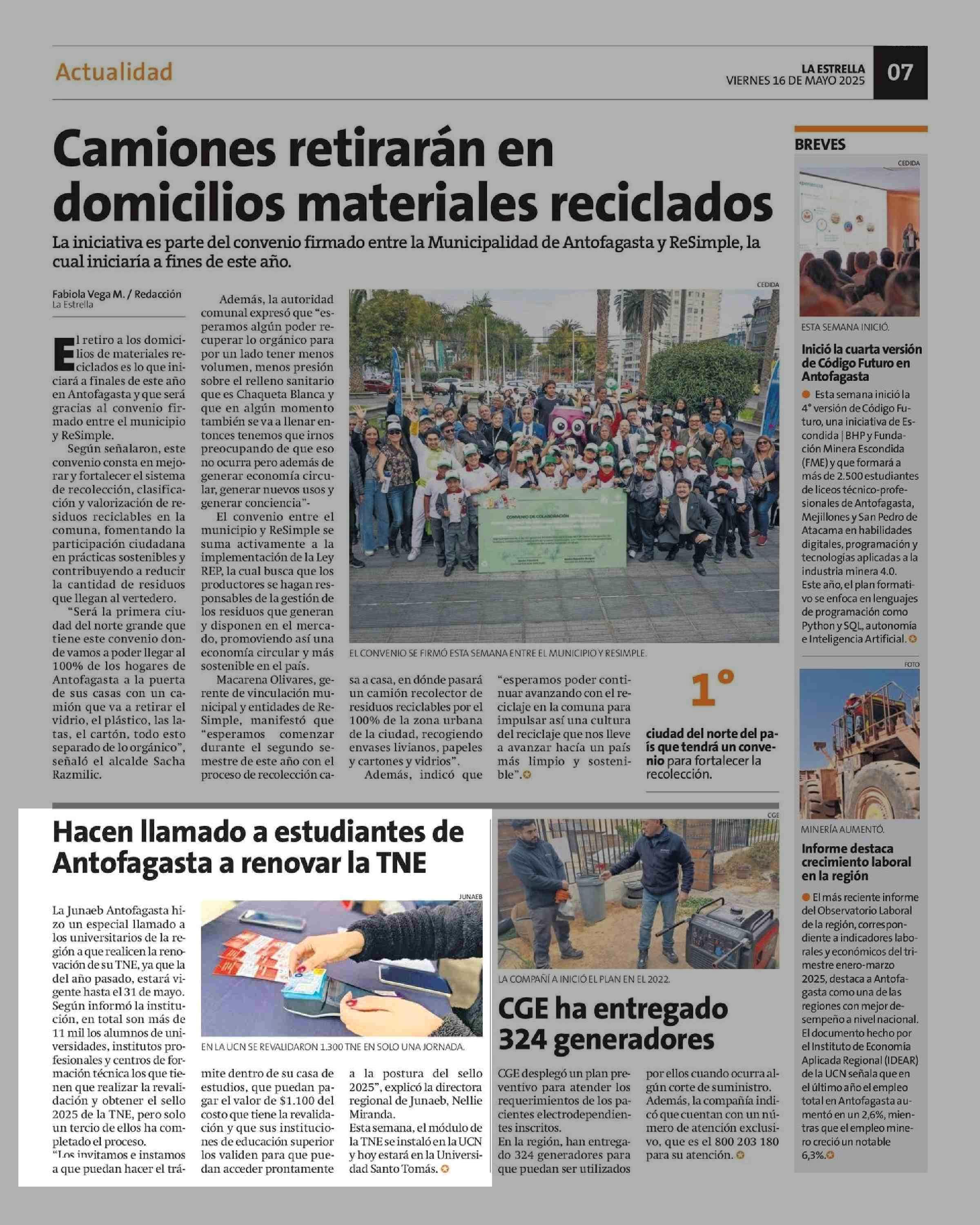 | Fecha: | 16-05-2025 | Sector: | Noticia general | Región: | Región de Antofagasta |