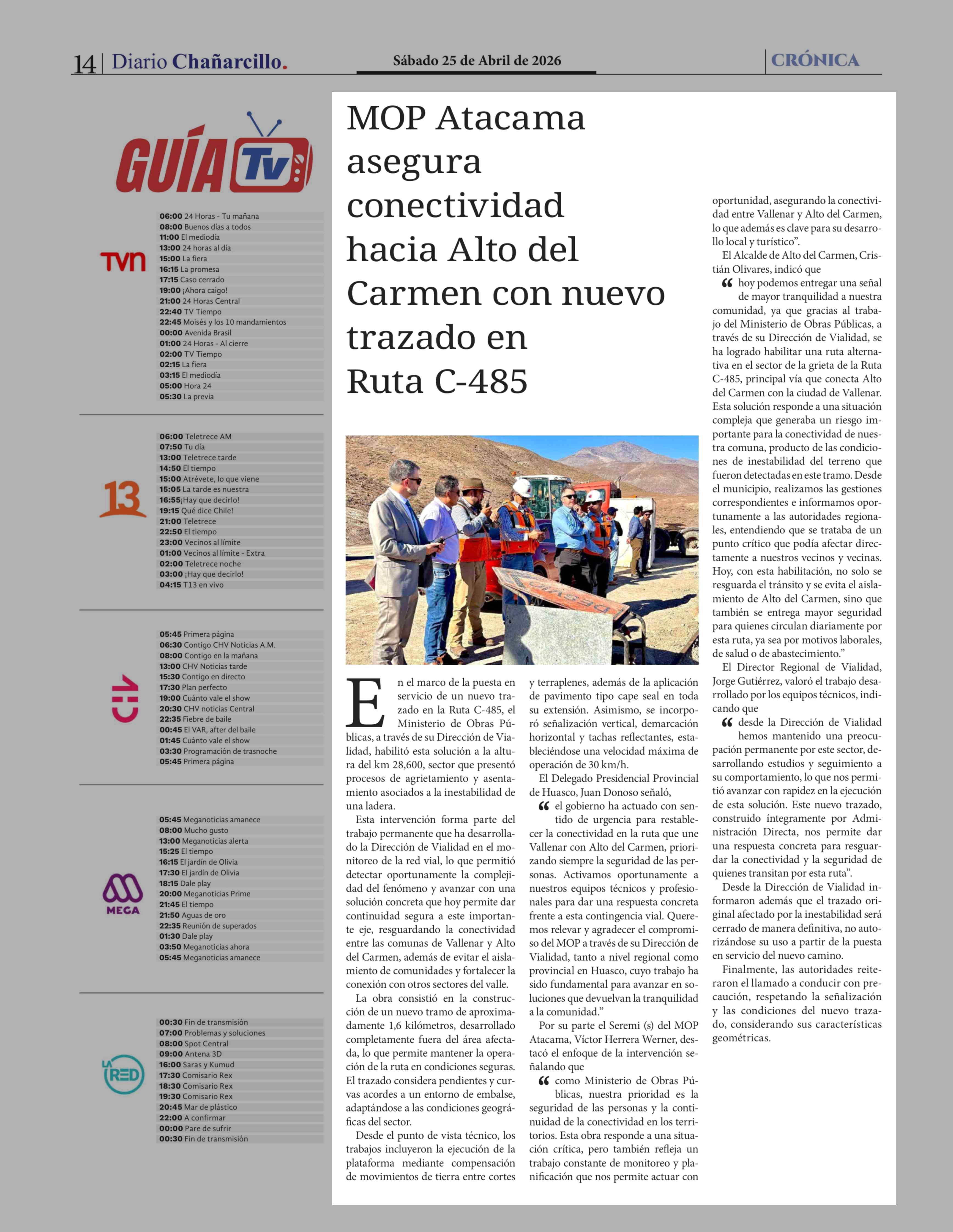 | Fecha: | 25-04-2026 | Sector: | Noticia general | Región: | Región de Atacama |
