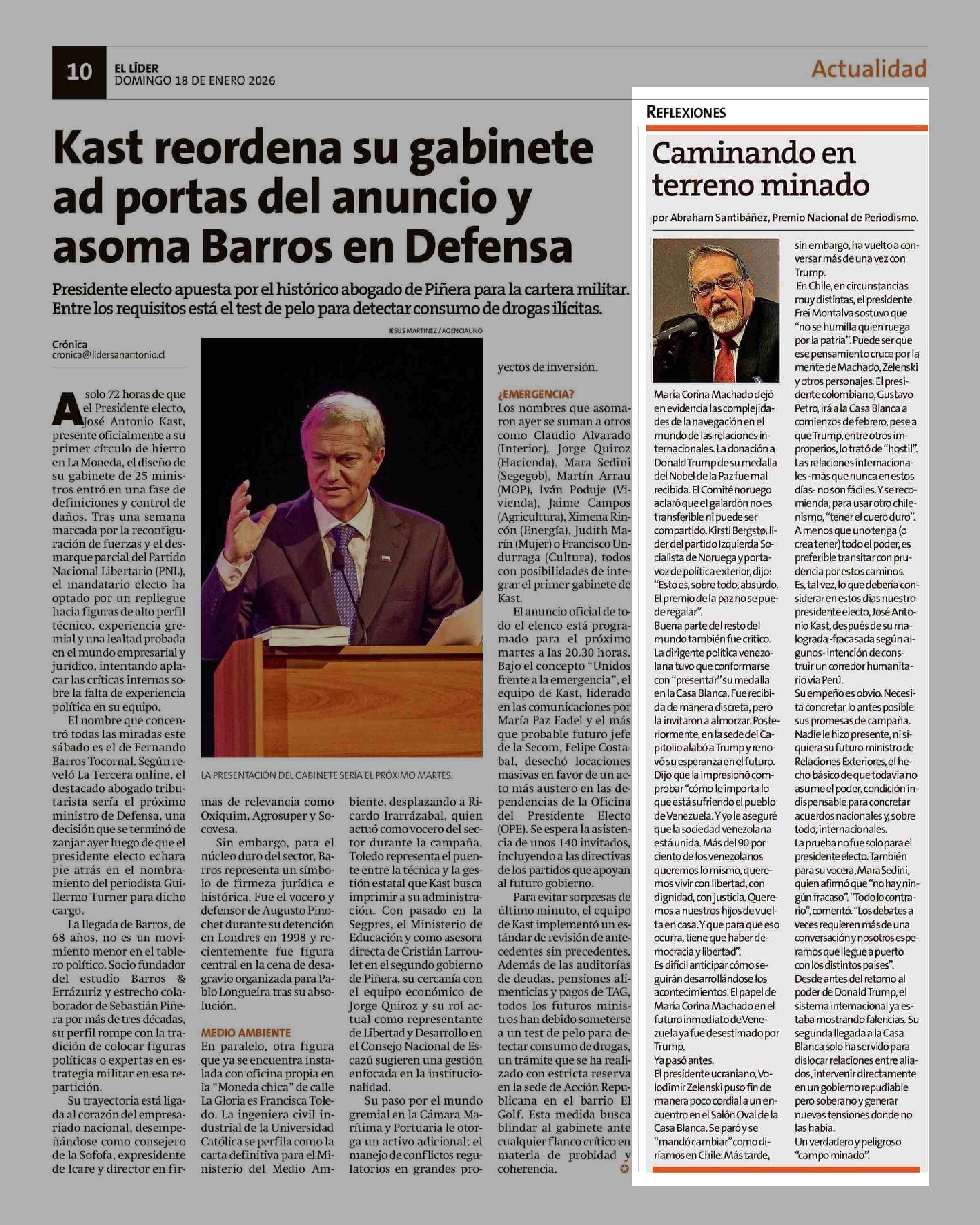 Columnas de Opinión: Caminando en terreno minado 18-01-2026 El Líder |