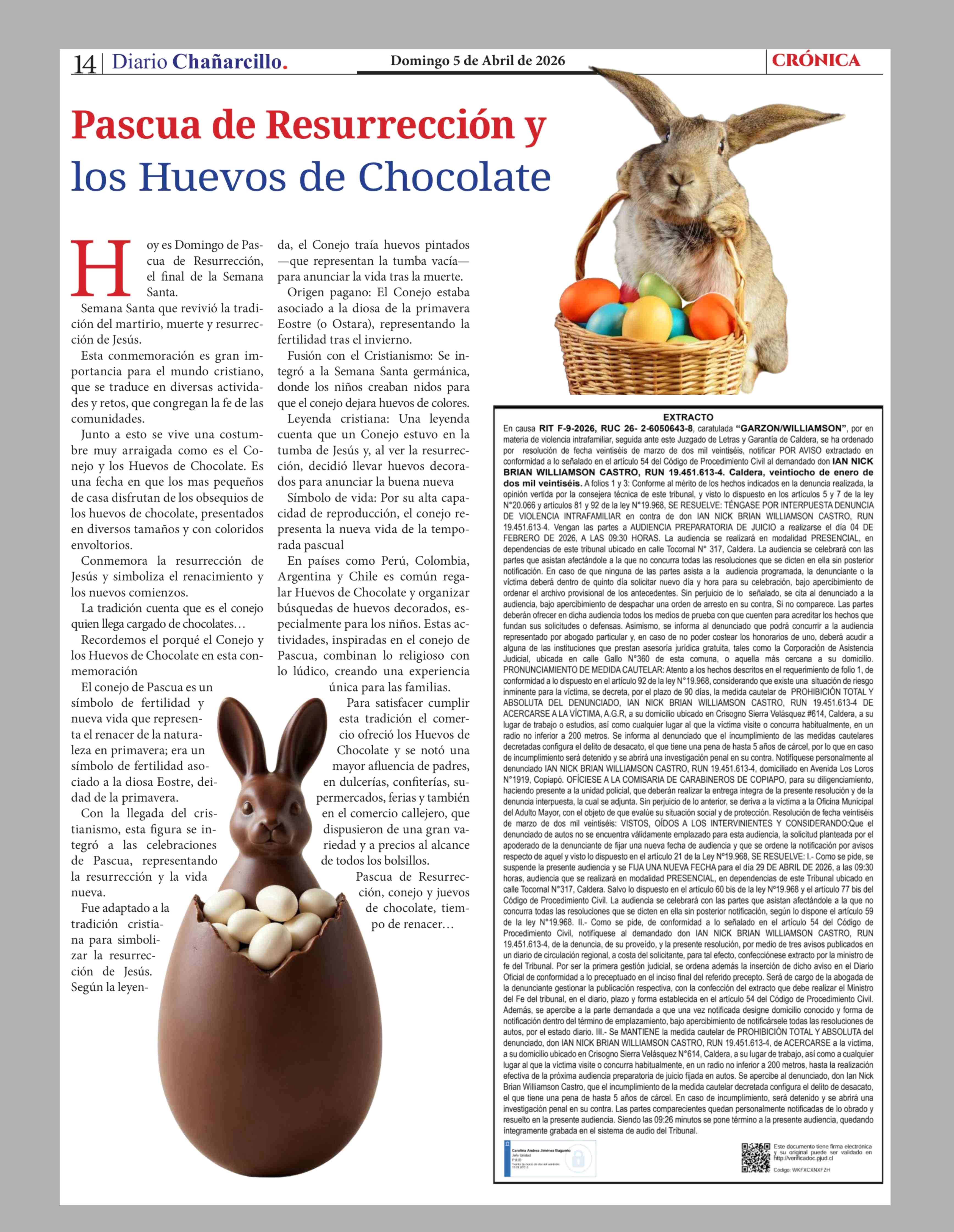 Fuente: Diario Chañarcillo (Diario Chanarcillo) Página(s): 14