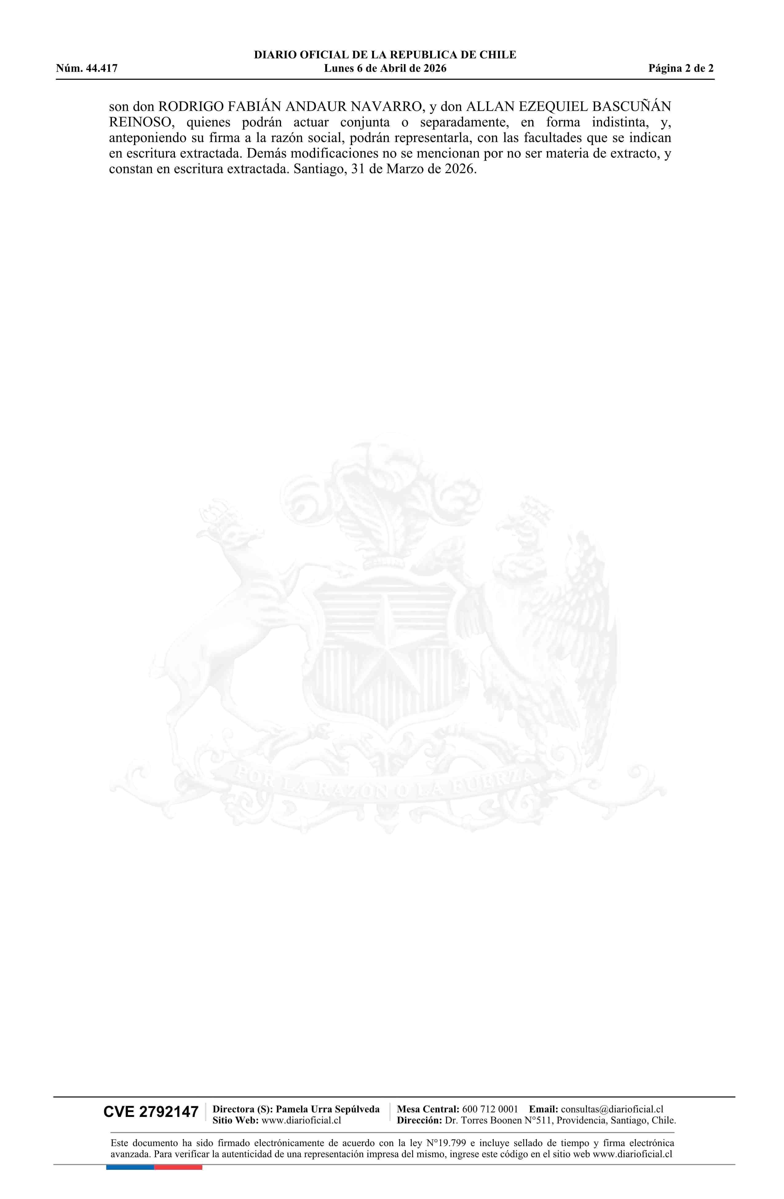 Abra Transportes SpA 77.385.681-8* 06-04-2026 Diario Oficial Edición Electrónica |