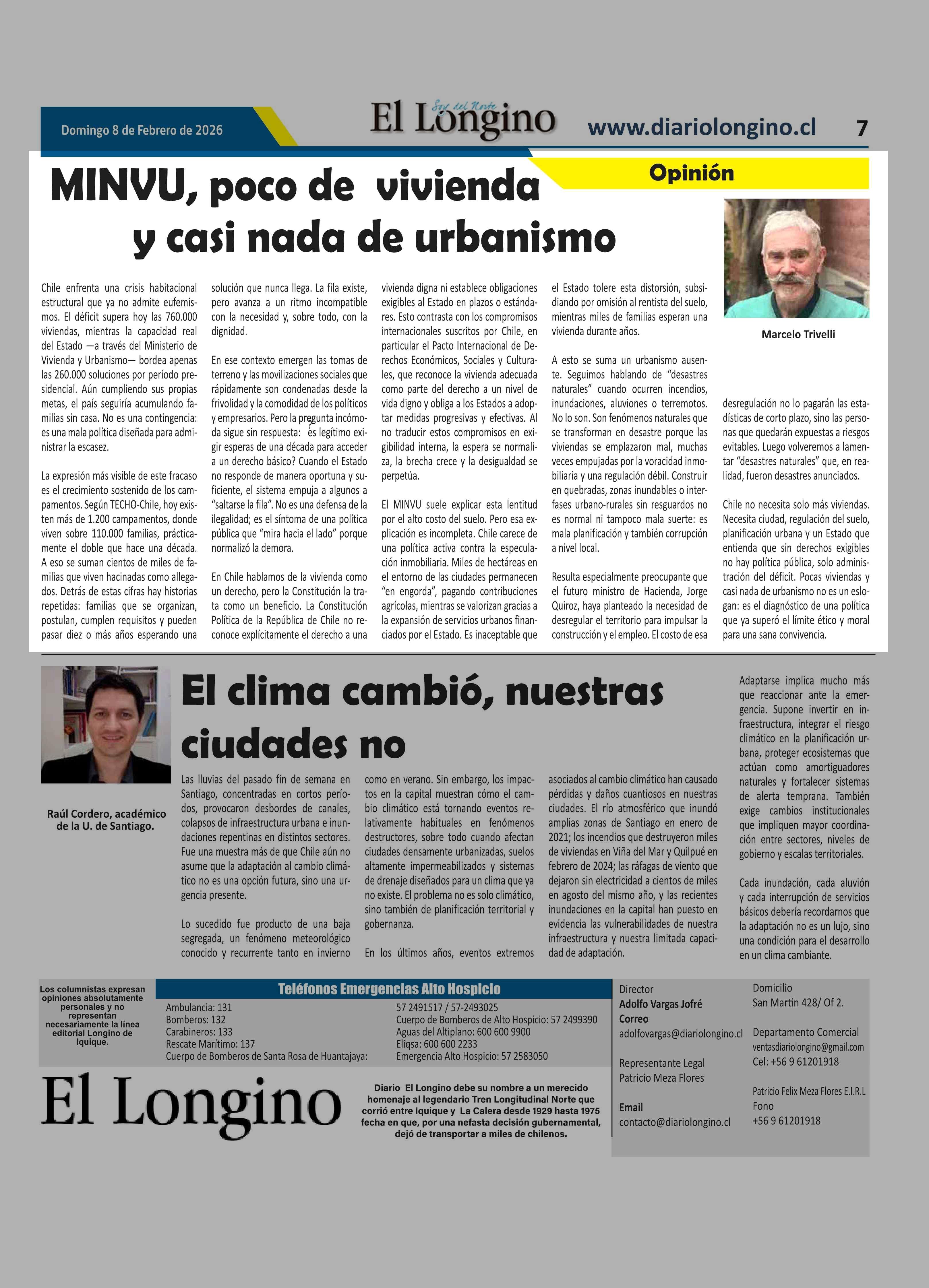 Fecha: 08-02-2026 Sector: Columnas de Opinión Región: Región de Tarapacá