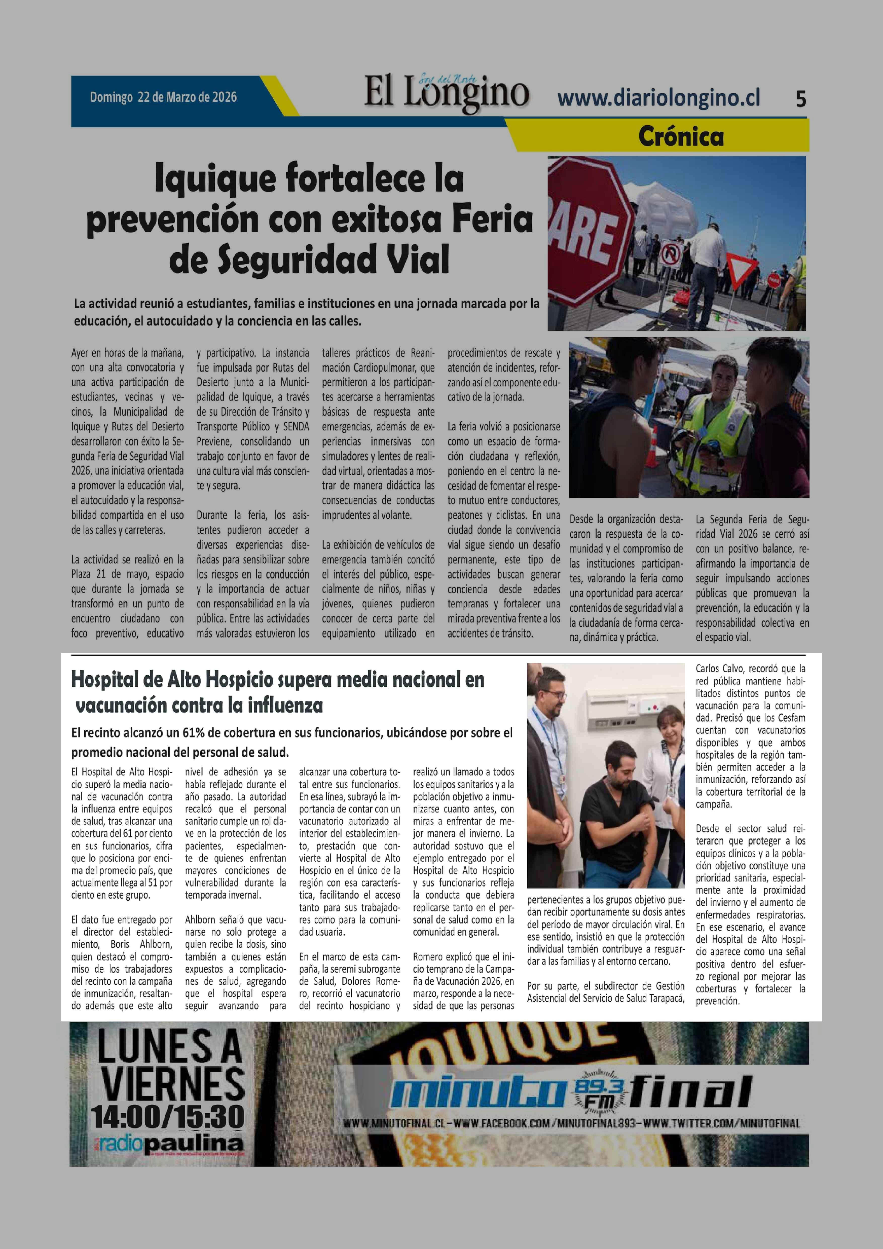 Fecha: 22-03-2026 Sector: Noticia general Región: Región de Tarapacá