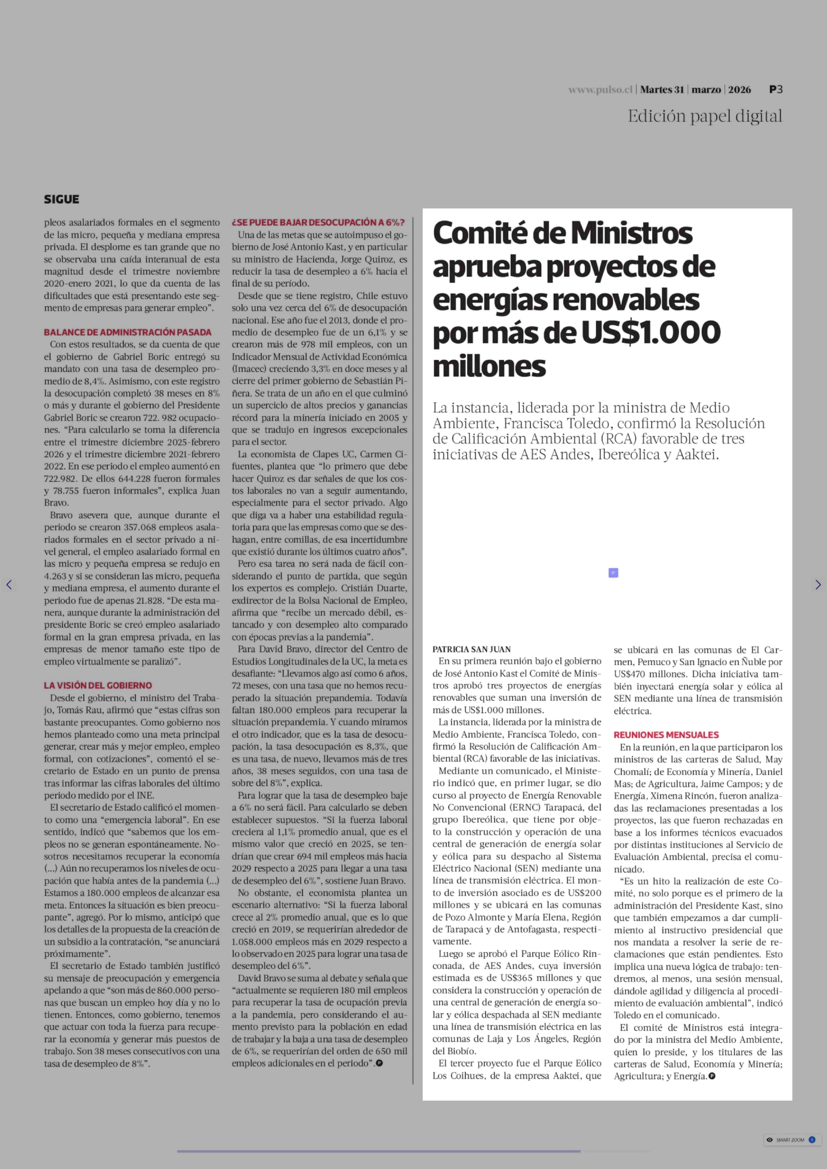 Título: Comité de Ministros aprueba proyectos de energías renovables por más de US$1.000 millones