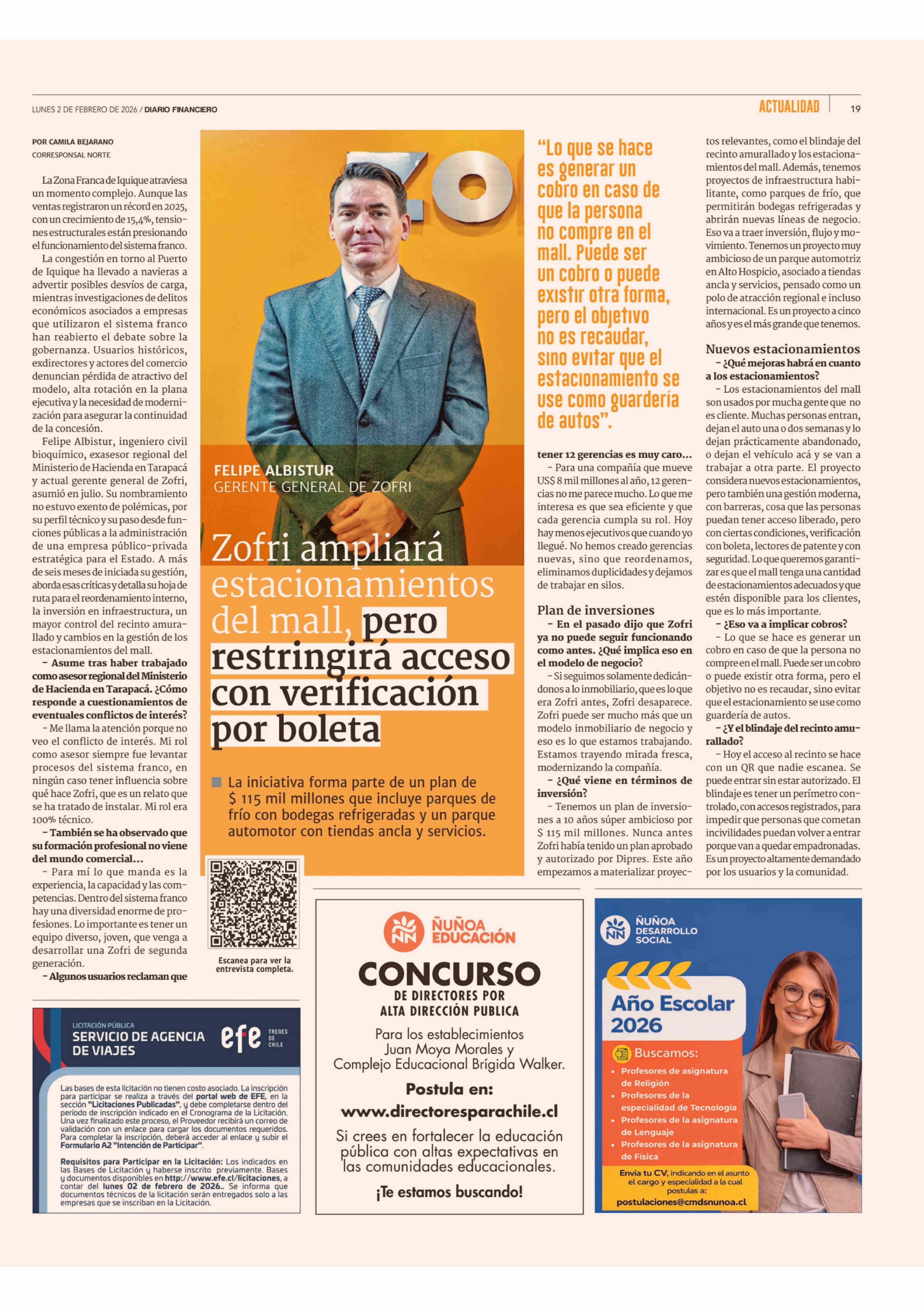 Zofri ampliará estacionamientos del mall, pero restringirá acceso con verificación por boleta 02-02-2026 Diario Financiero |