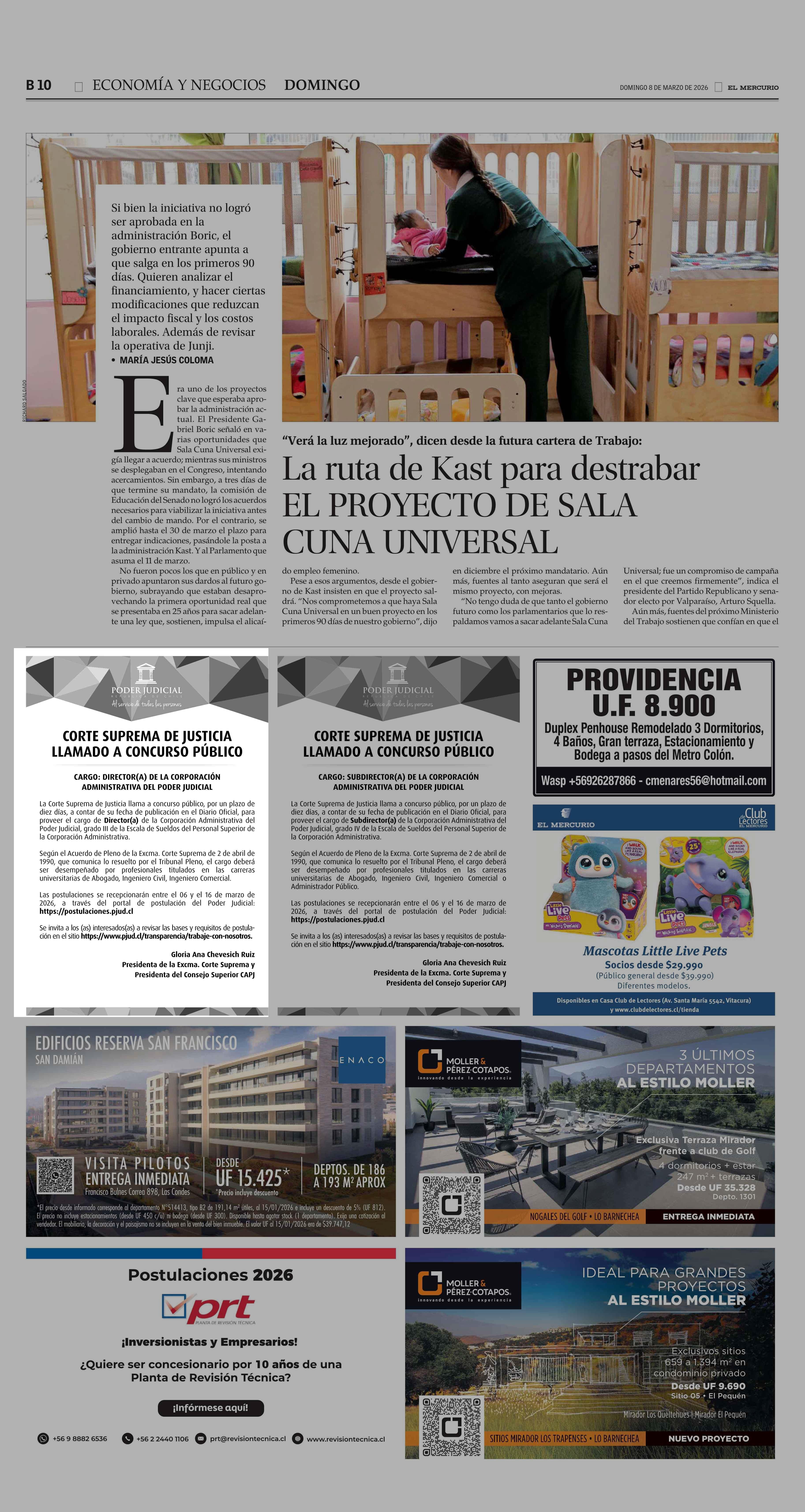 AVISO LICITACIONES: CORTE SUPREMA DE JUSTICIA LLAMADO A CONCURSO PUBLICO 08-03-2026 El Mercurio |