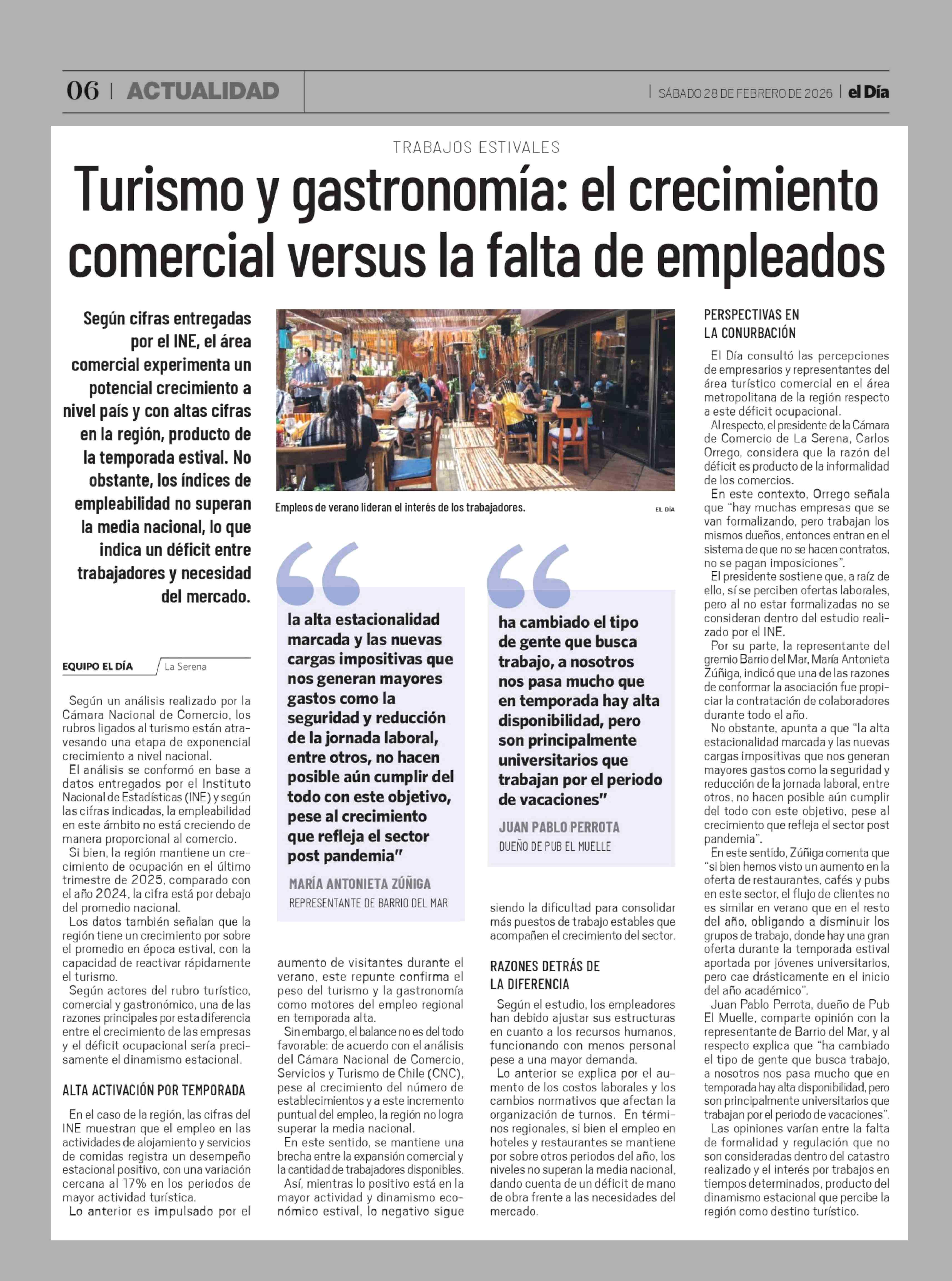 Turismo y gastronomía: el crecimiento comercial versus la falta de empleados 28-02-2026 El Día |