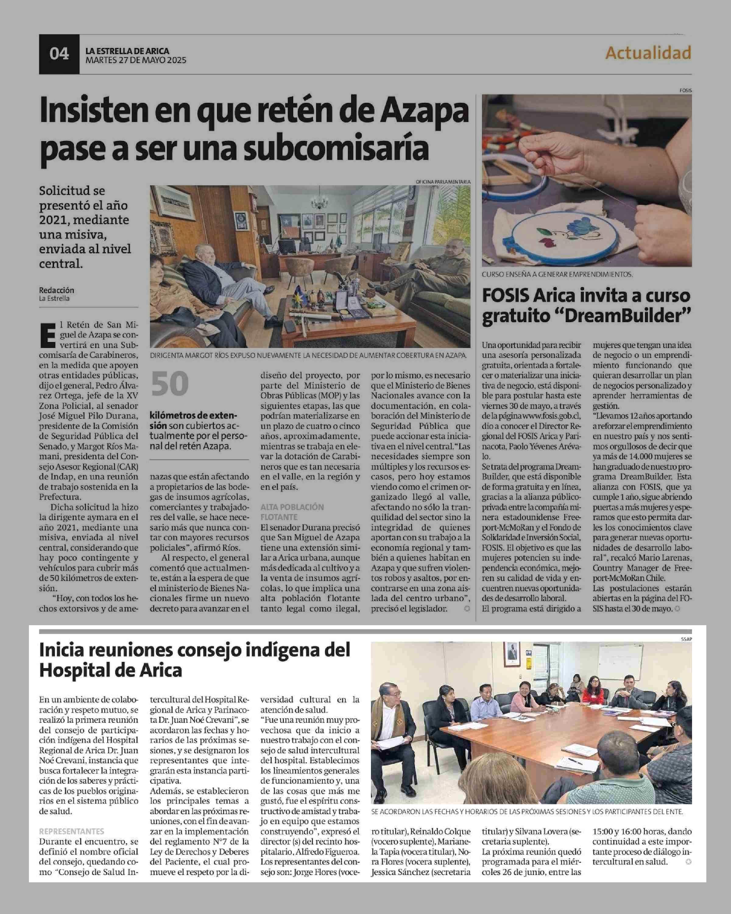 | Fecha: | 27-05-2025 | Sector: | Noticia general | Región: | Región de Arica y Parinacota |