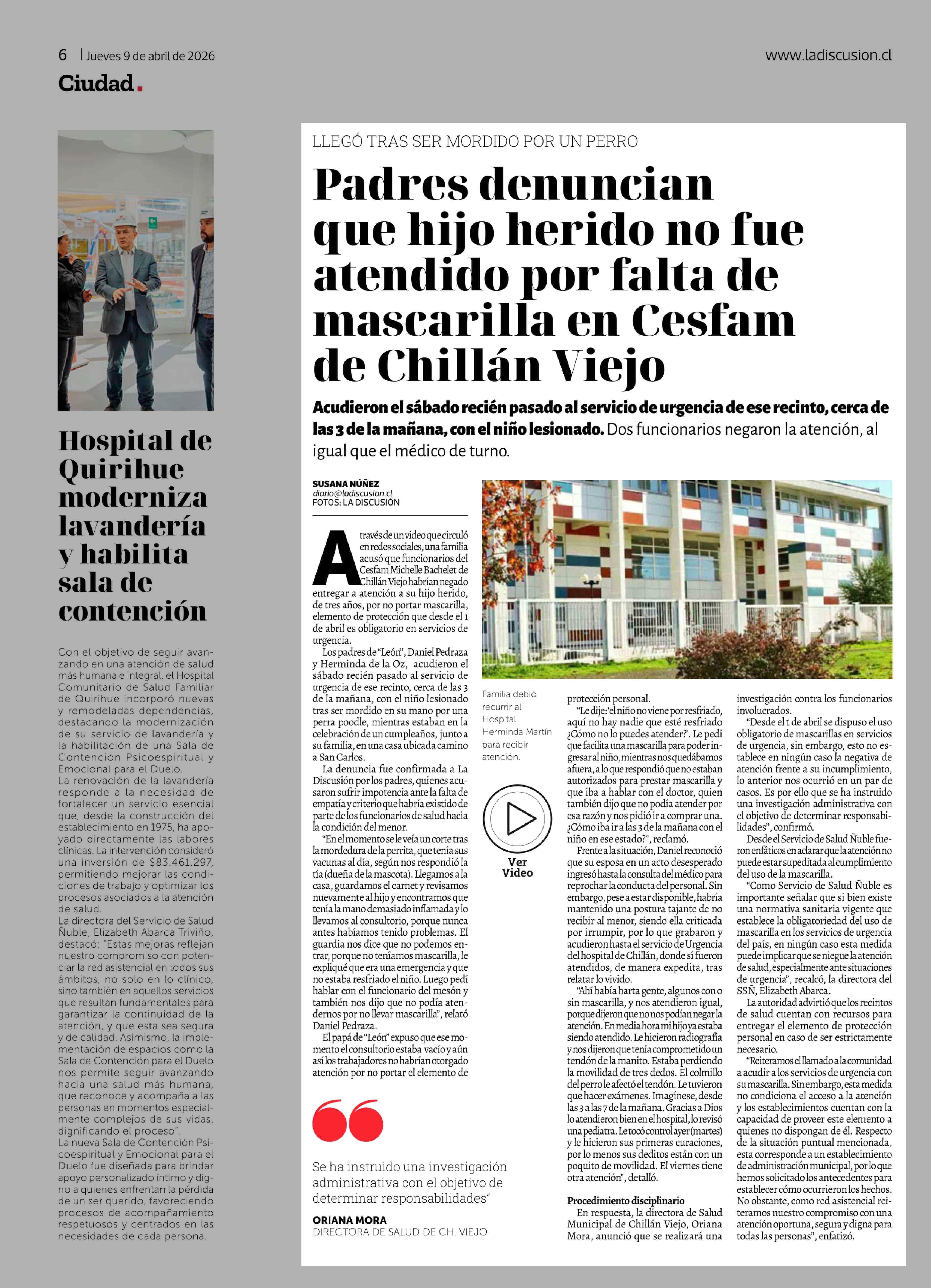 Título: Padres denuncian que hijo herido no fue atendido por falta de mascarilla en Cesfam de Chillán Viejo