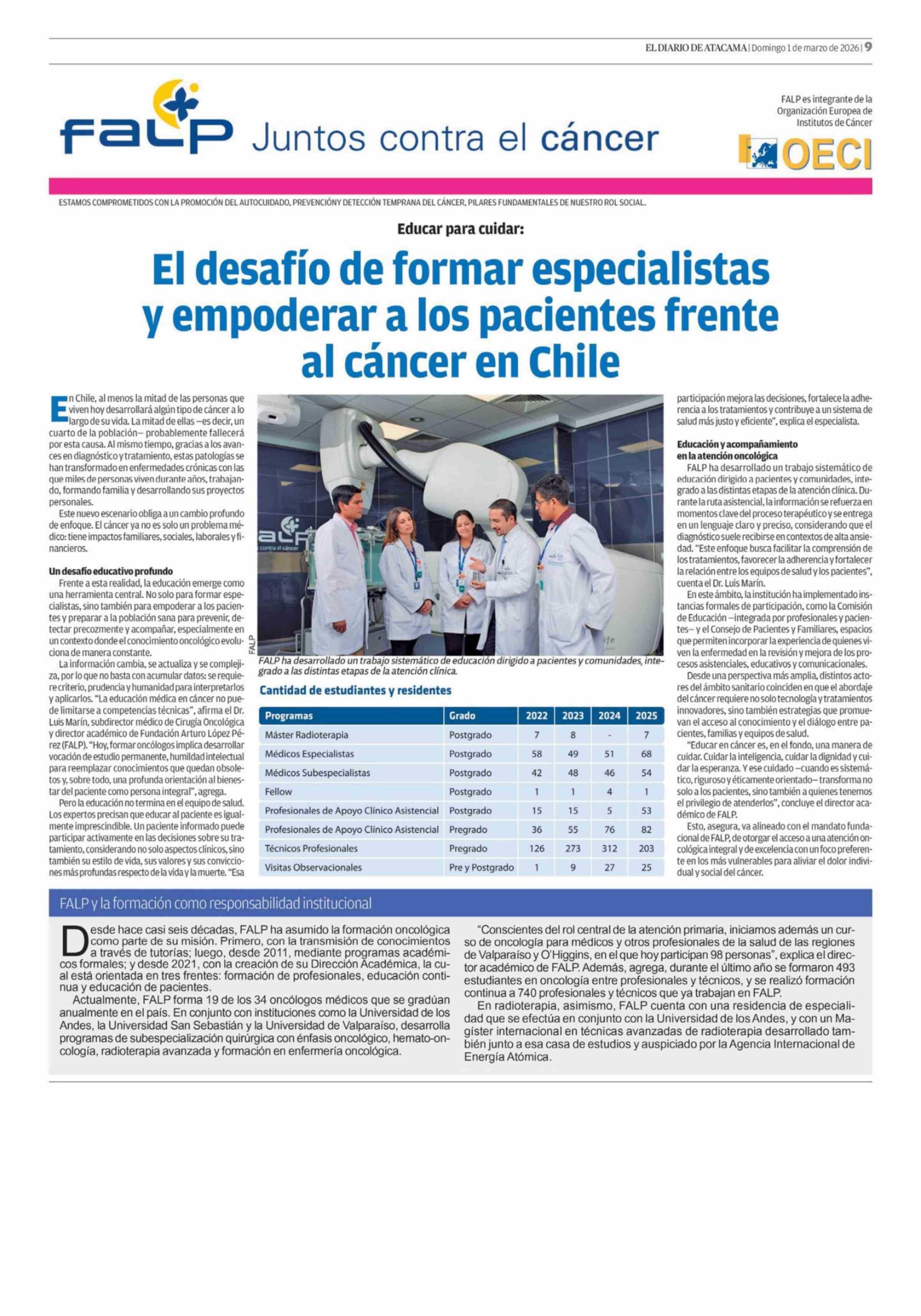 El desafío de formar especialistas y empoderar a los pacientes frente al cáncer en Chile 01-03-2026 El Diario de Atacama |