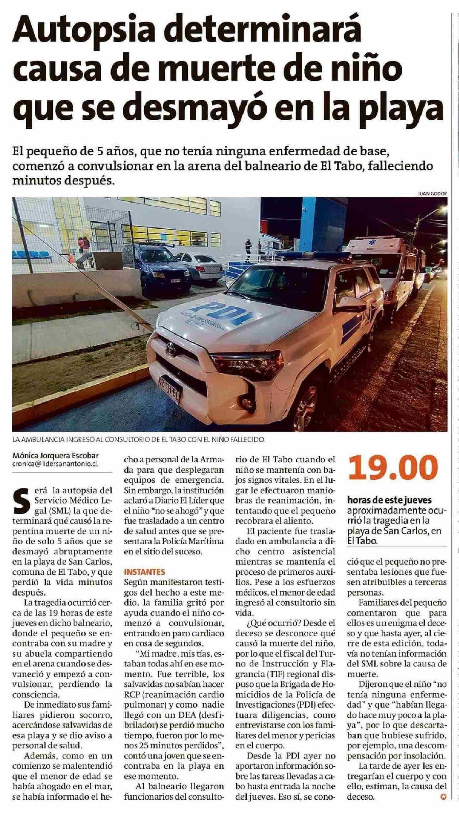 Autopsia determinará causa de muerte de niño que se desmayo en la playa 24-01-2026 El Líder |