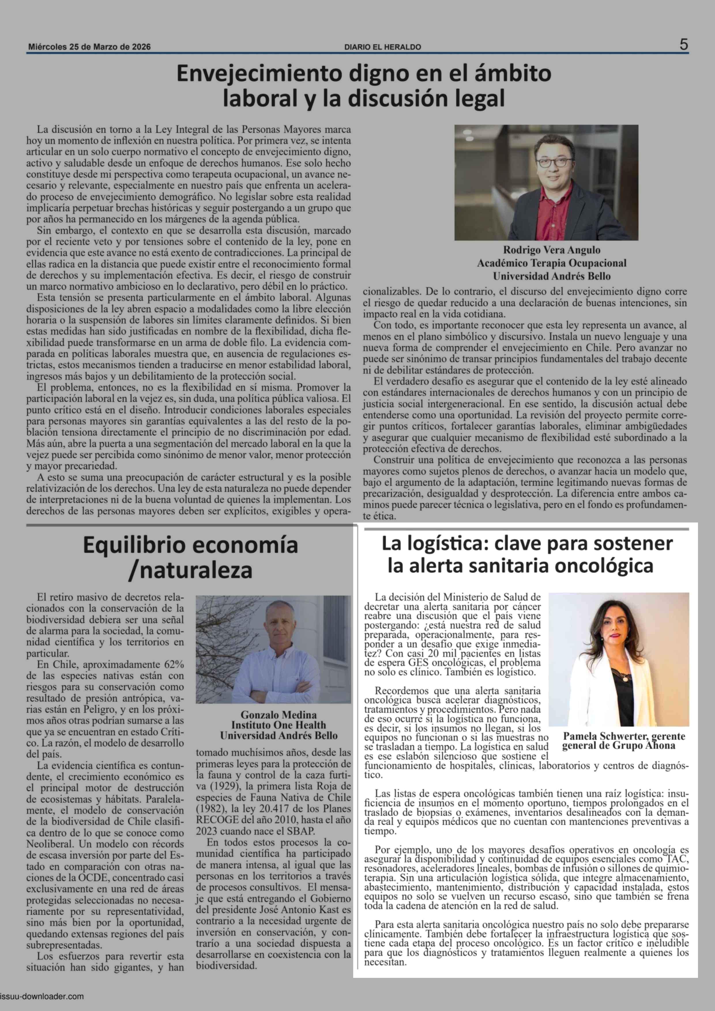 Columnas de Opinión: La logística: clave para sostener la alerta sanitaria oncológica 25-03-2026 El Heraldo |