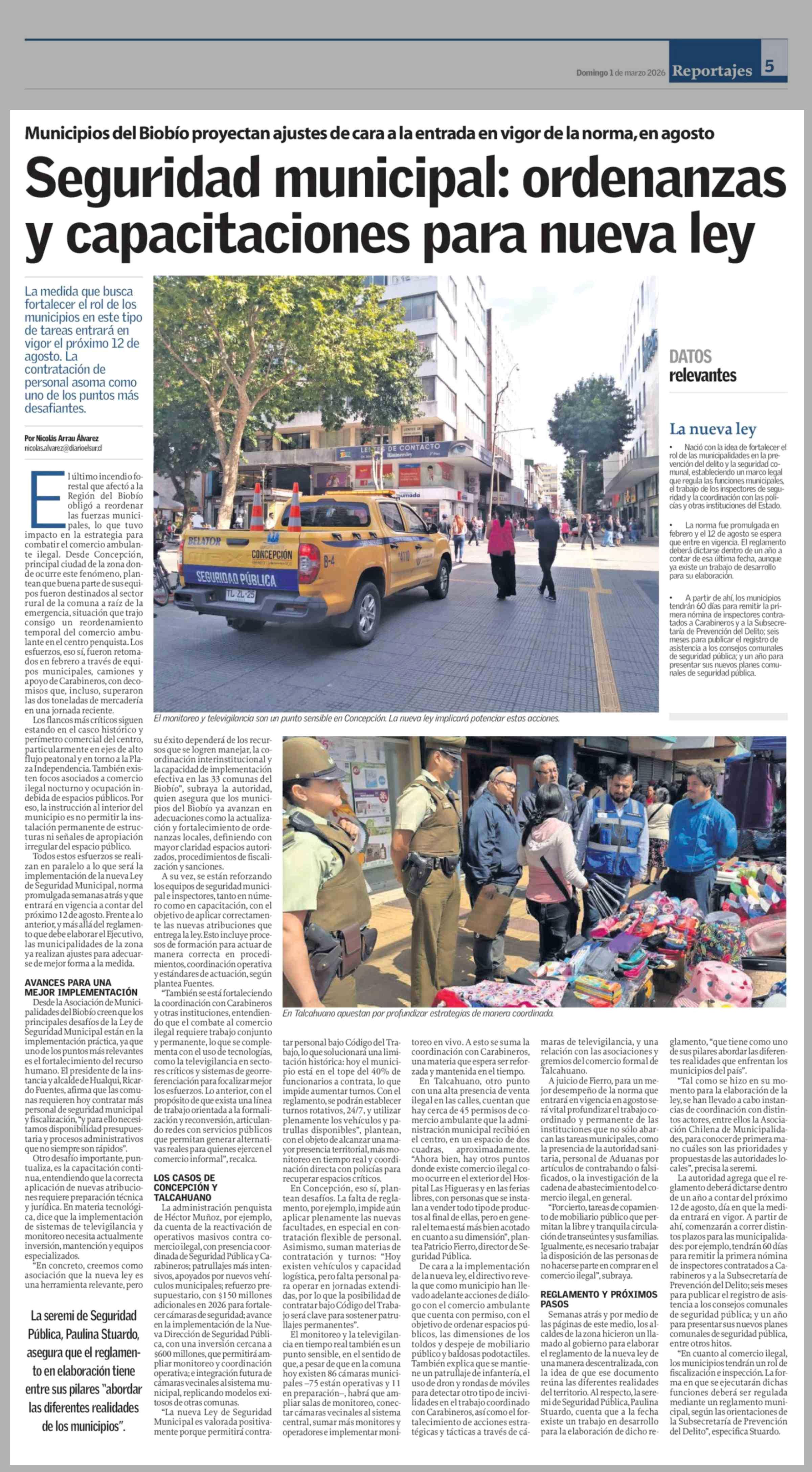 Seguridad municipal: ordenanzas y capacitaciones para nueva ley 01-03-2026 El Sur |