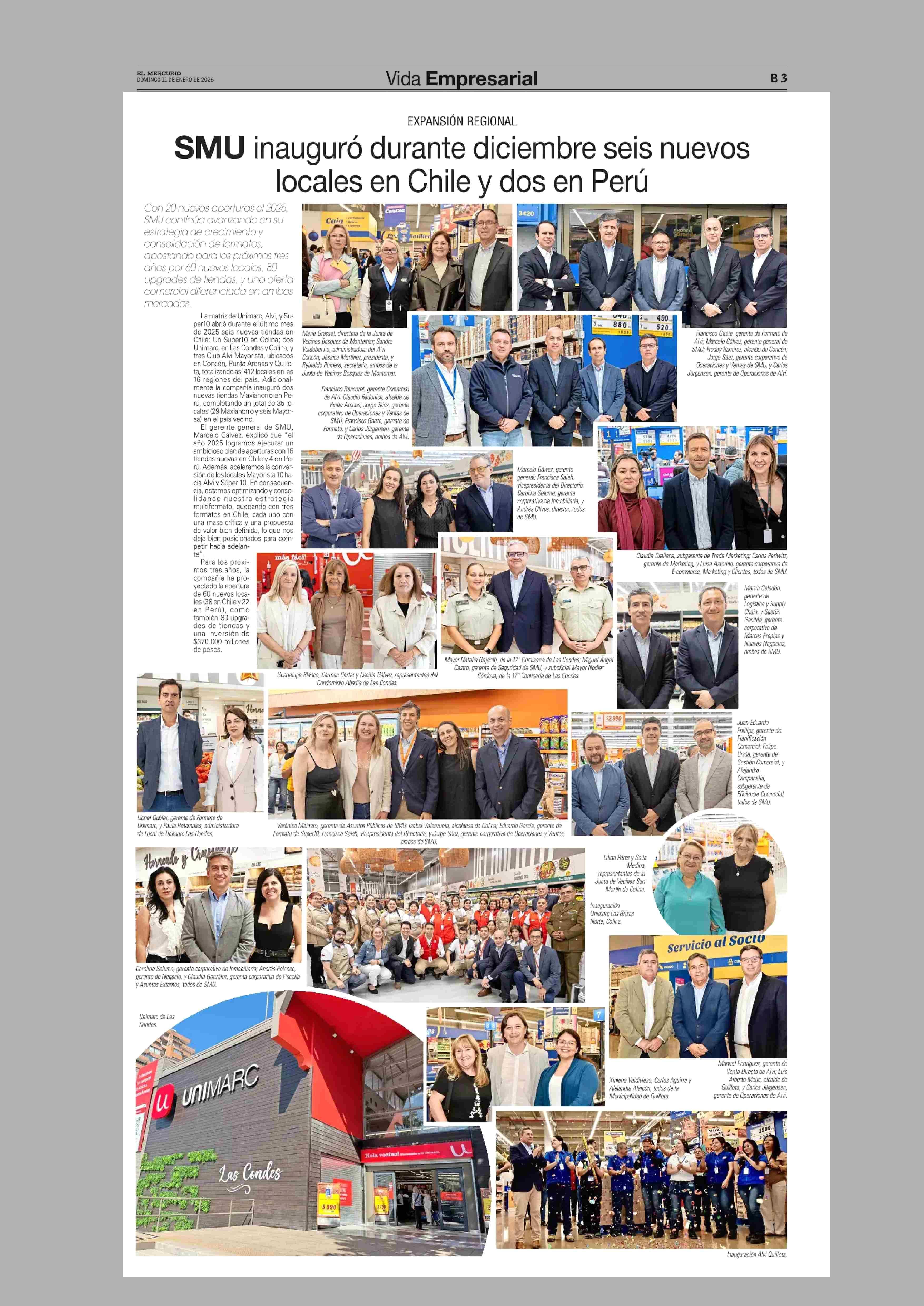 Título: SMU ¡inauguró durante diciembre seis nuevos locales en Chile y dos en Perú