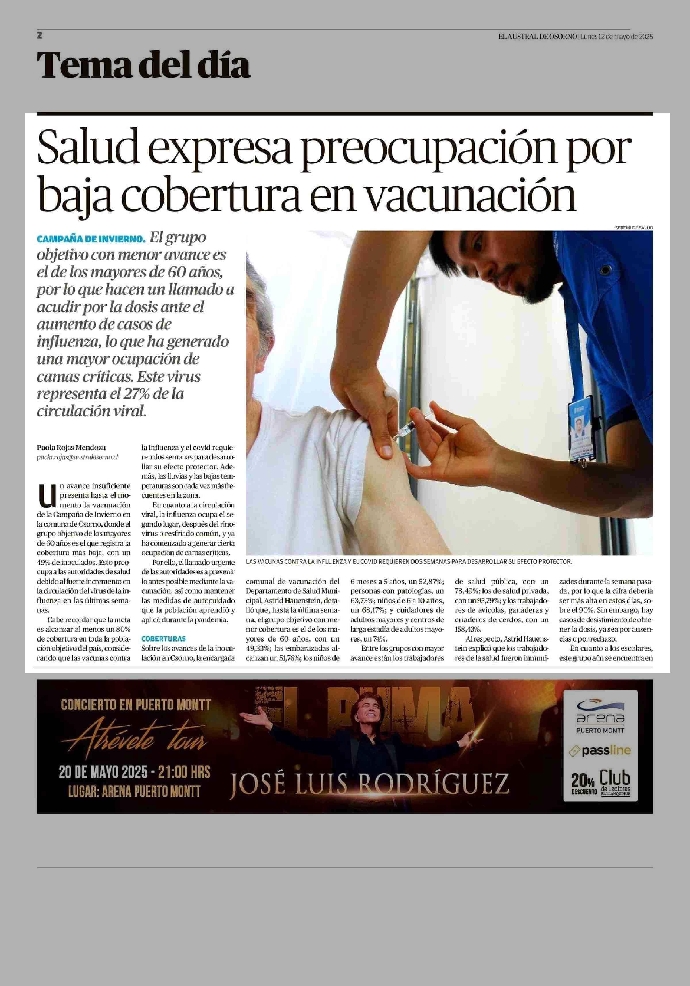 Salud expresa preocupación por baja cobertura en vacunación 12-05-2025 El Austral de Osorno |