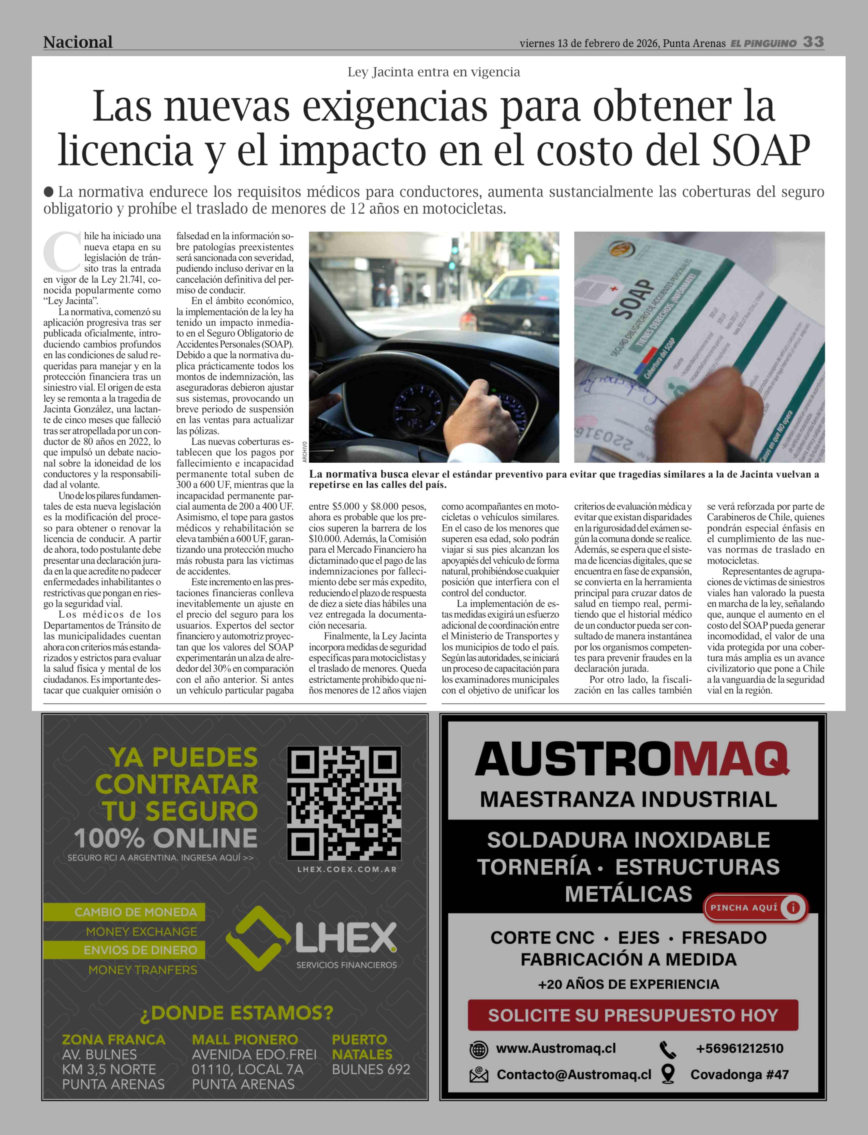 Las nuevas exigencias para obtener la licencia y el impacto en el costo del SOAP 13-02-2026 El Pingüino |