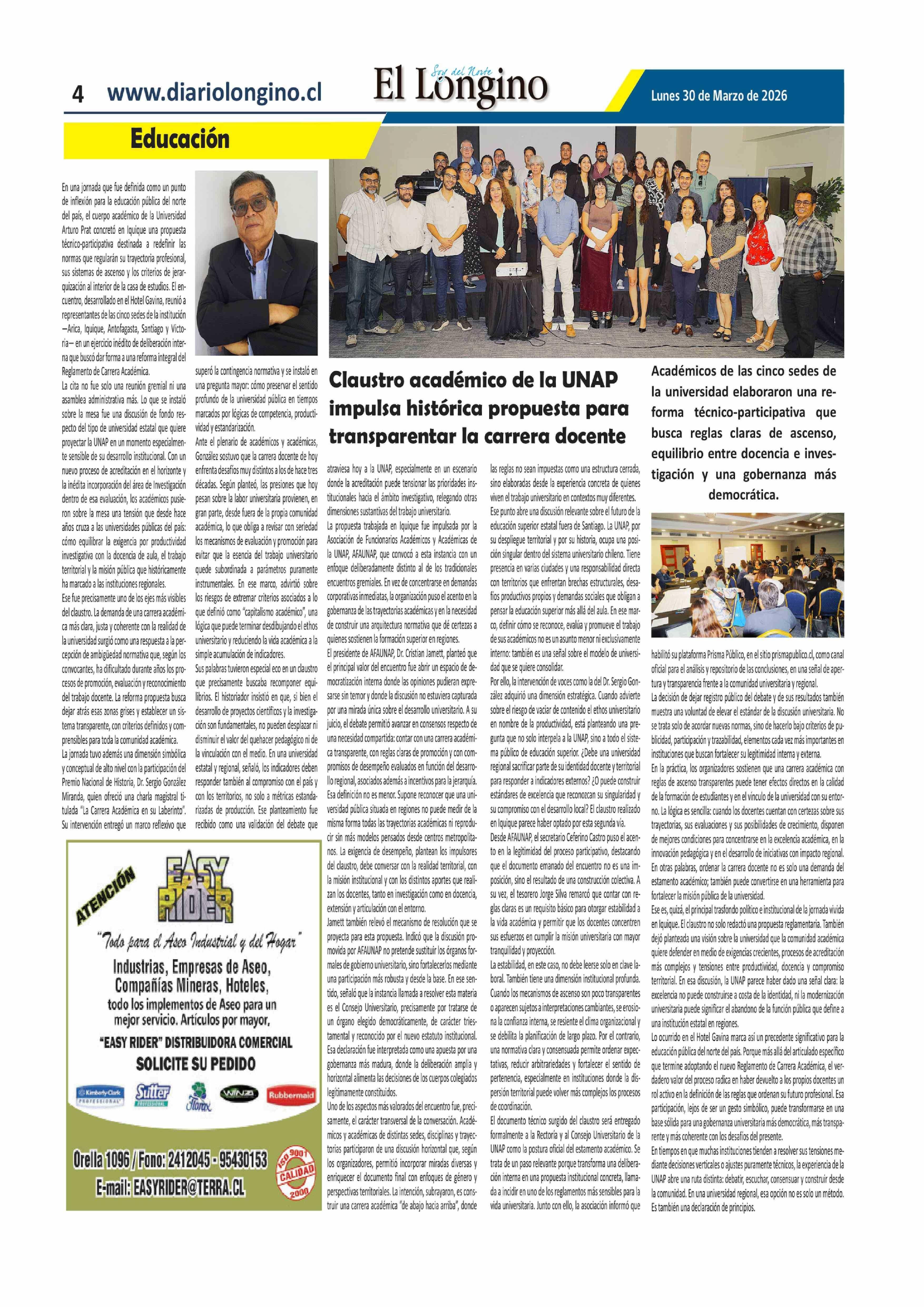Título: Claustro académico de la UNAP impulsa histórica propuesta para transparentar la carrera docente