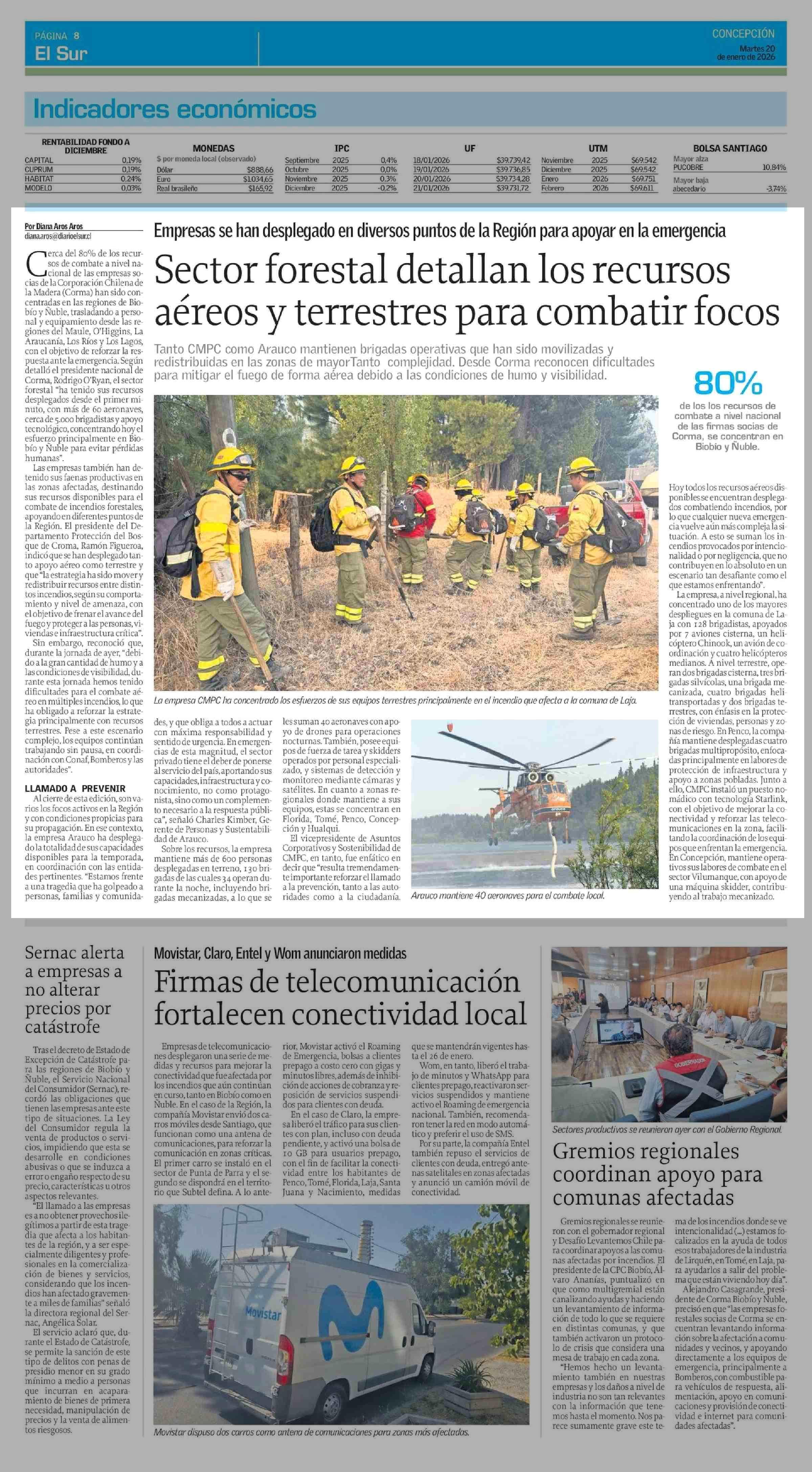 Sector forestal detallan los recursos aéreos y terrestres para combatir focos 20-01-2026 El Sur |