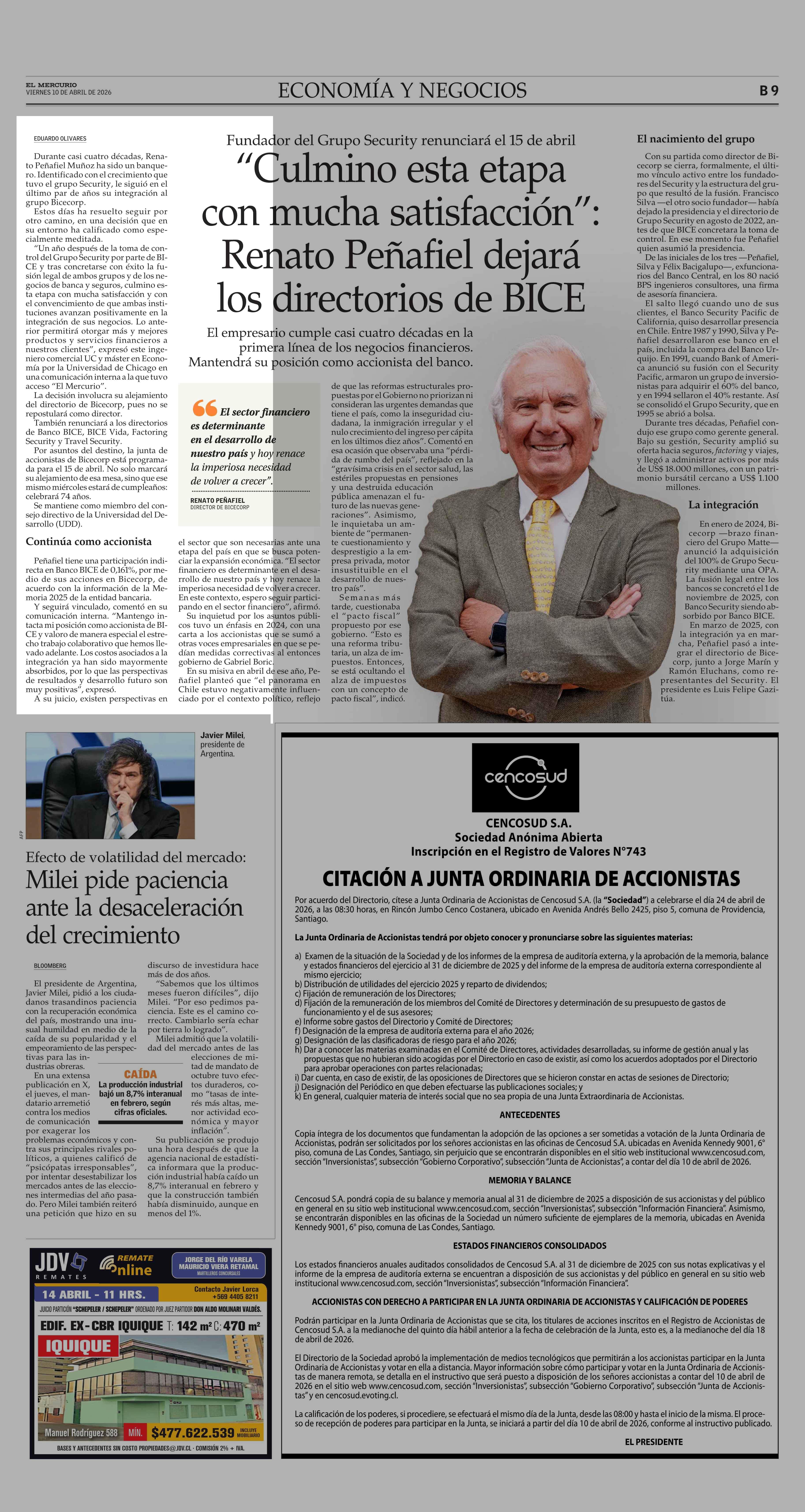 Fuente: El Mercurio (El Mercurio - Cuerpo B) Página(s): 9