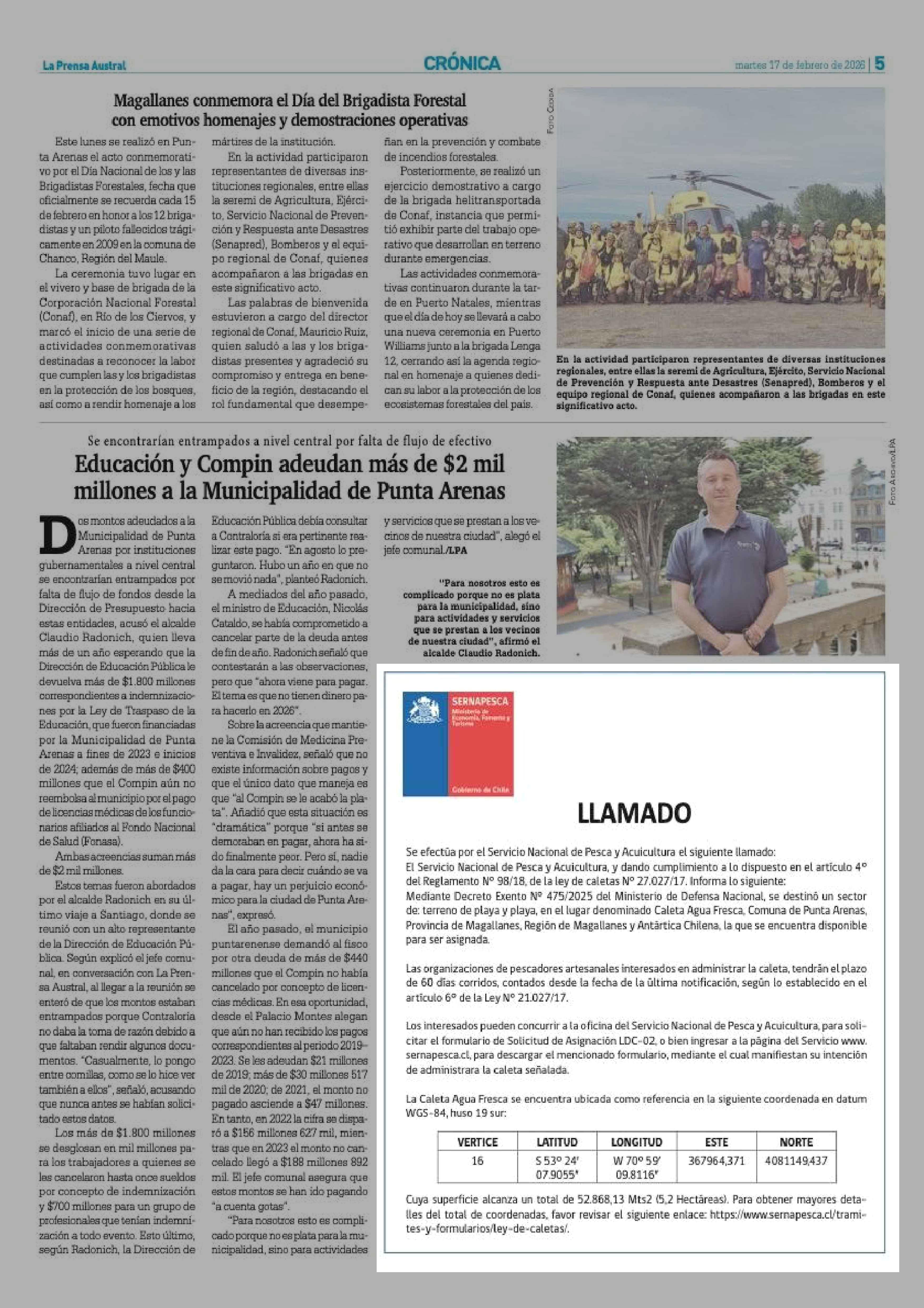 Fecha: 17-02-2026 Sector: Extractos Región: Región de Magallanes y de la Antártica Chilena