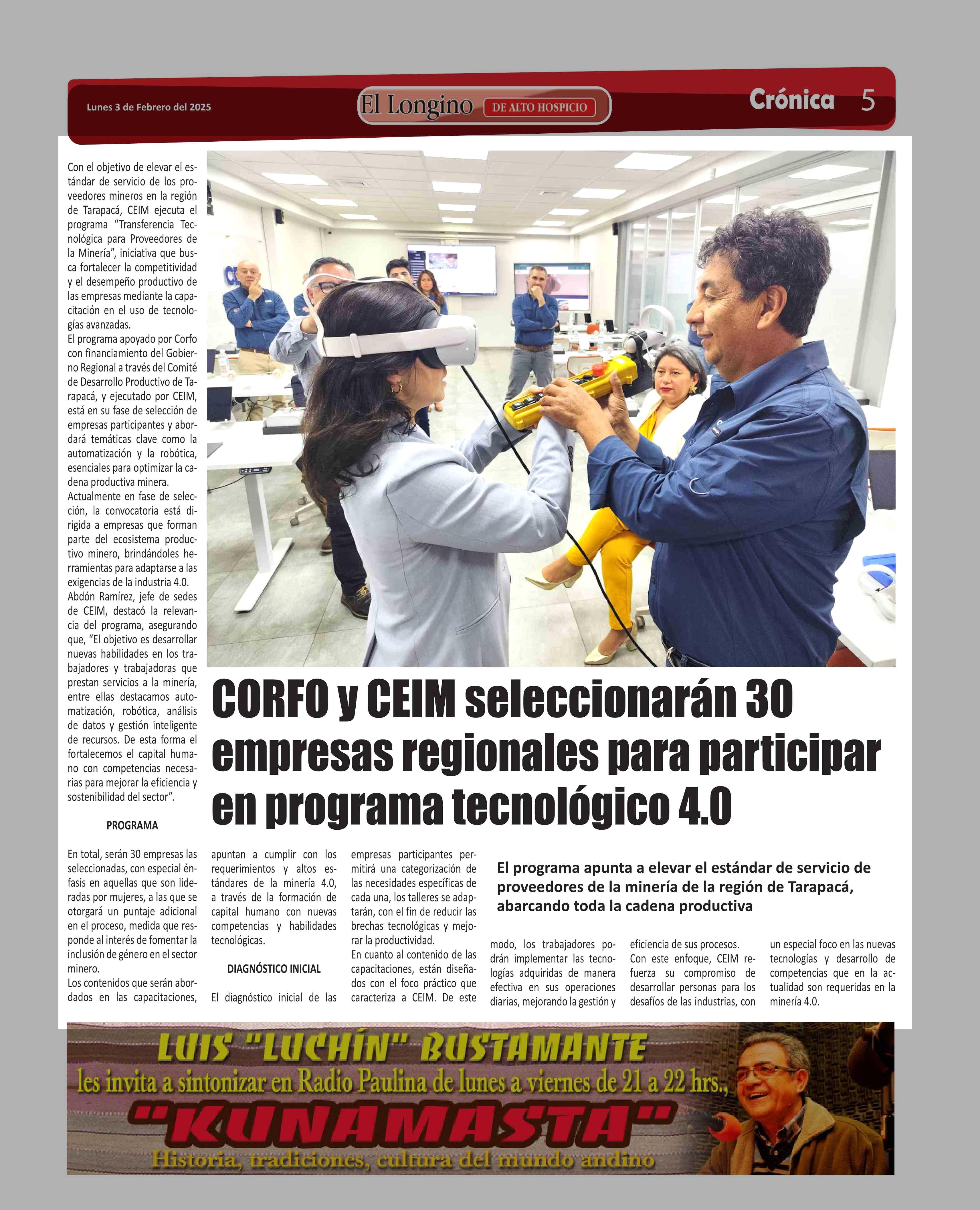 Título: CORFO y CEIM seleccionarán 30 empresas regionales para participar en programa tecnológico 4.0