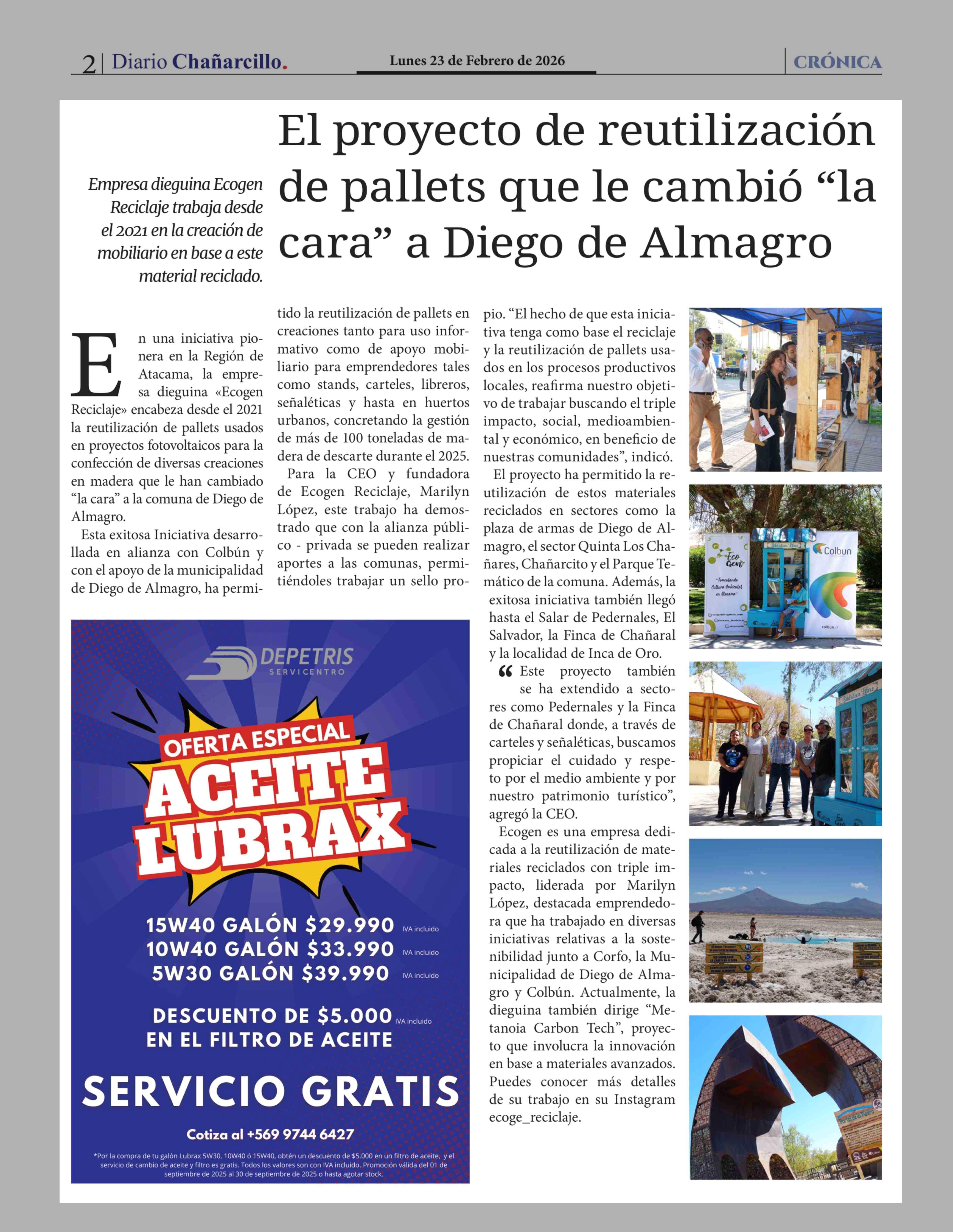 Título: El proyecto de reutilización de pallets que le cambió "la cara" a Diego de Almagro