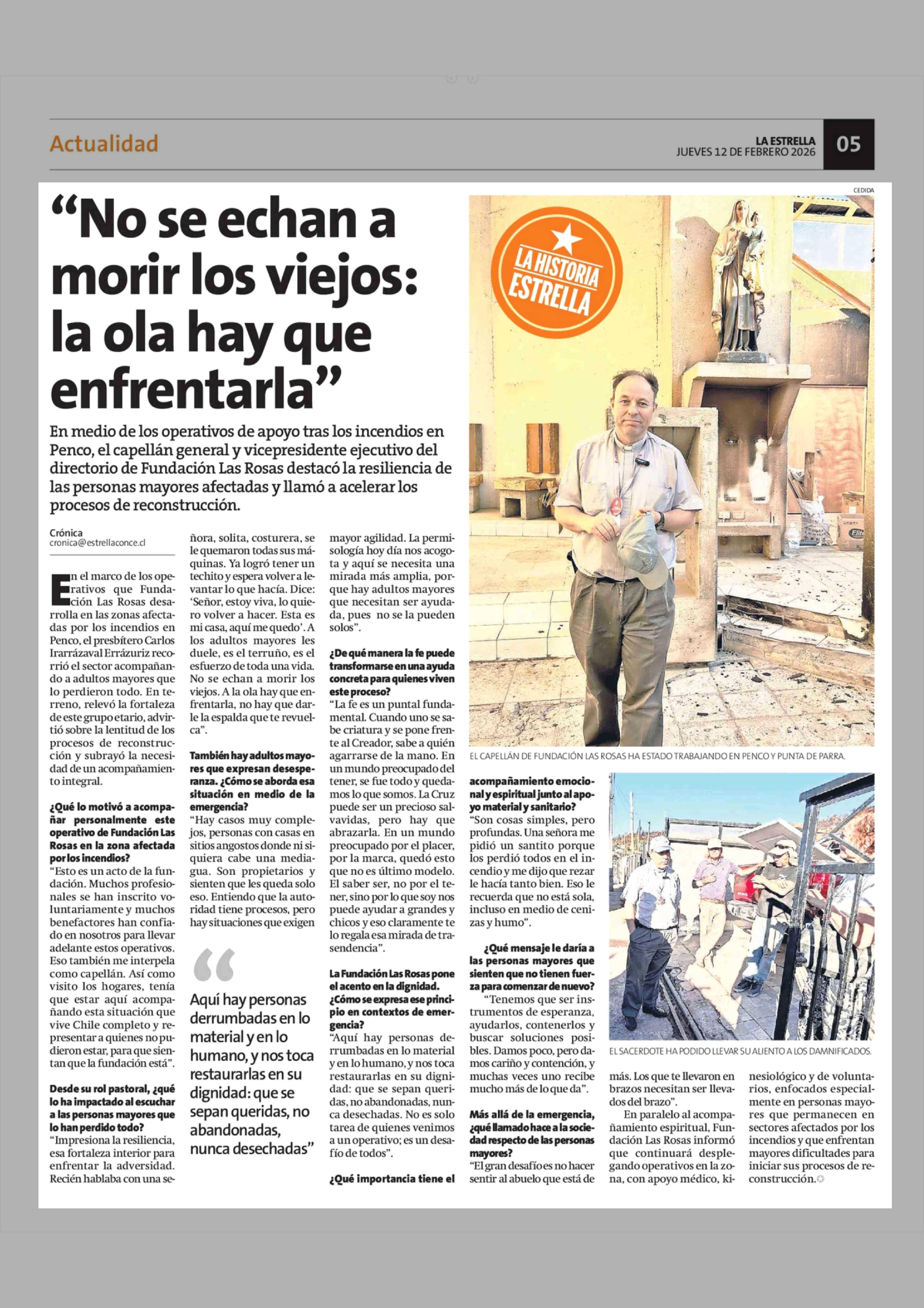 "No se echan a morir los viejos: la ola hay que enfrentarla" 12-02-2026 La Estrella de Concepción |