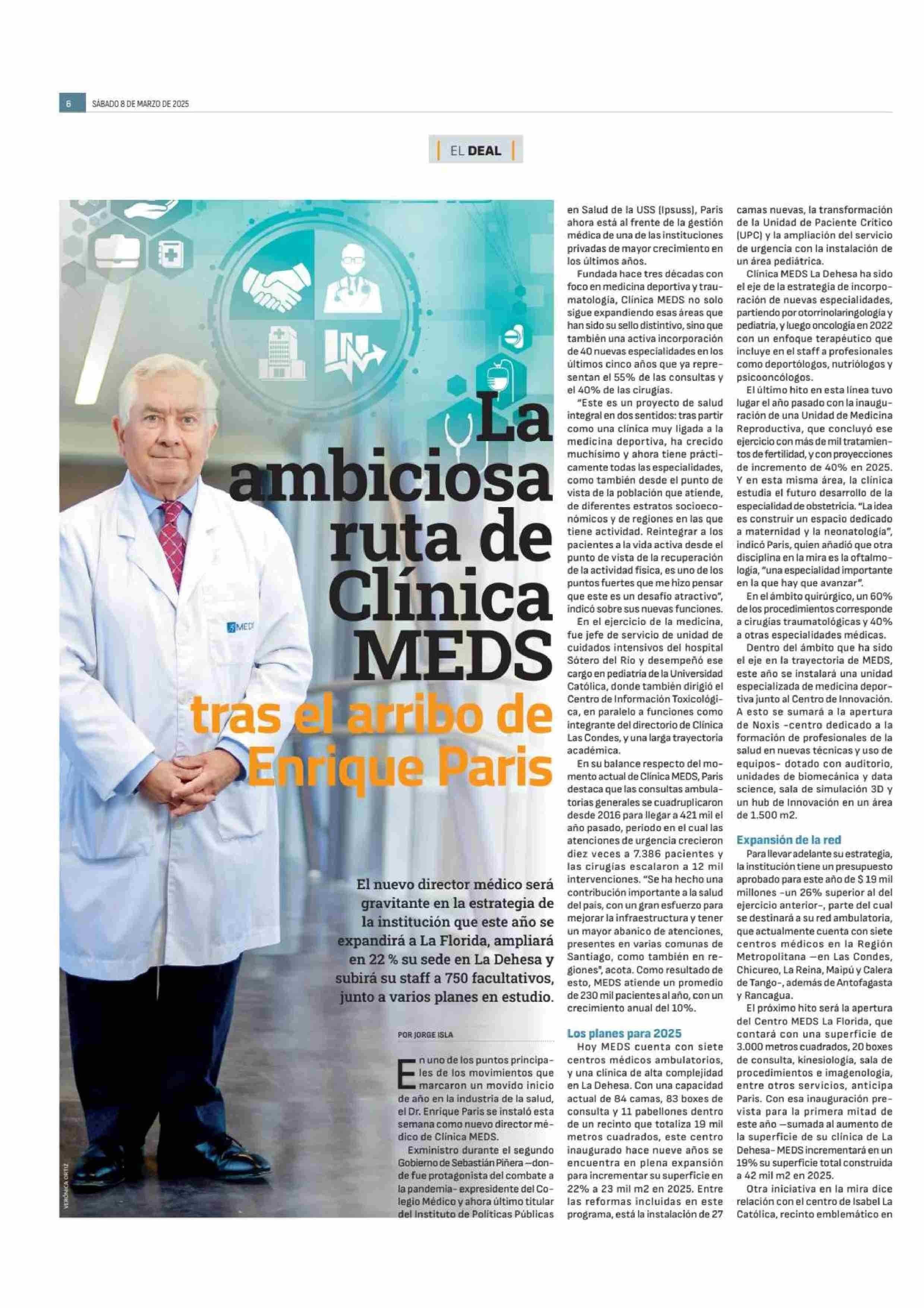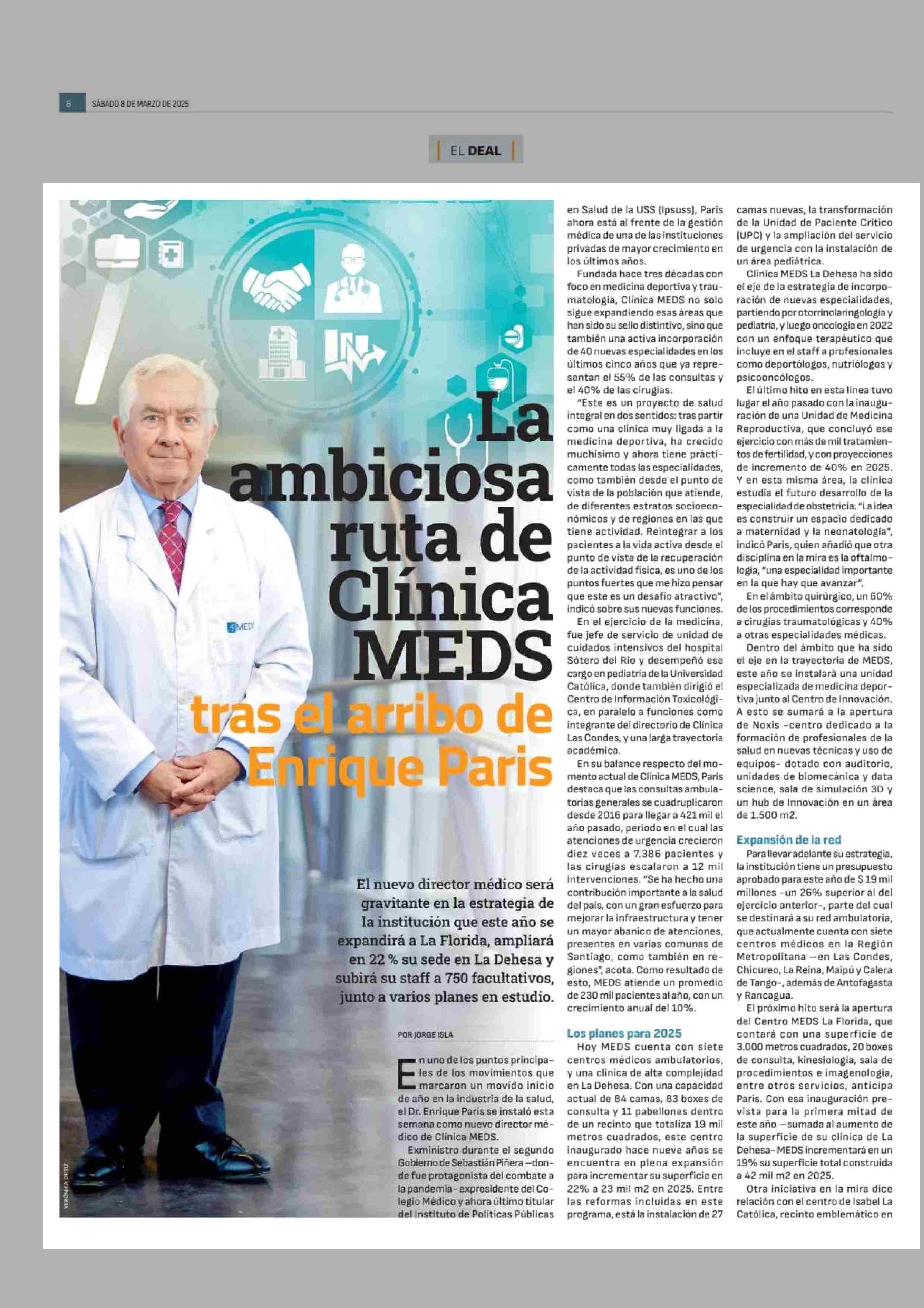 La ambiciosa ruta de Clínica MEDS tras el arribo de Eneique Paris 08-03-2025 Diario Financiero |