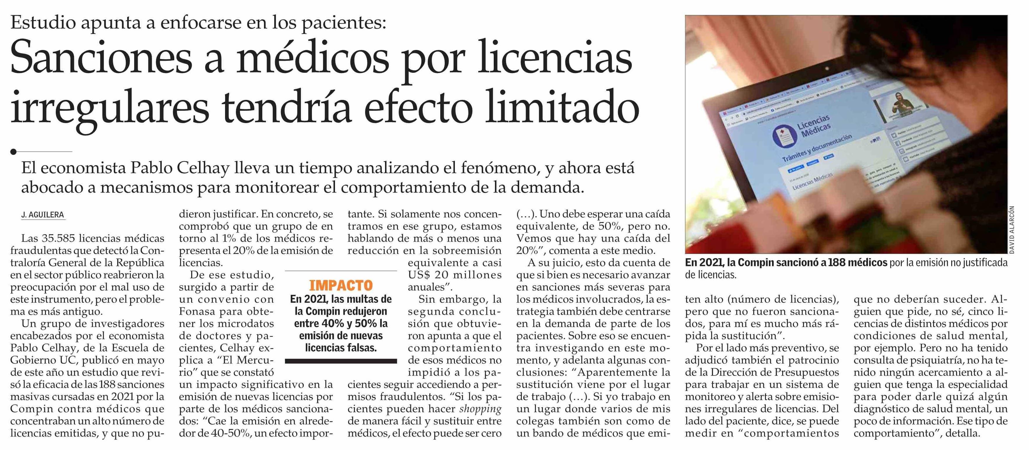 Sanciones a médicos por licencias irregulares tendría efecto limitado 30-05-2025 El Mercurio |