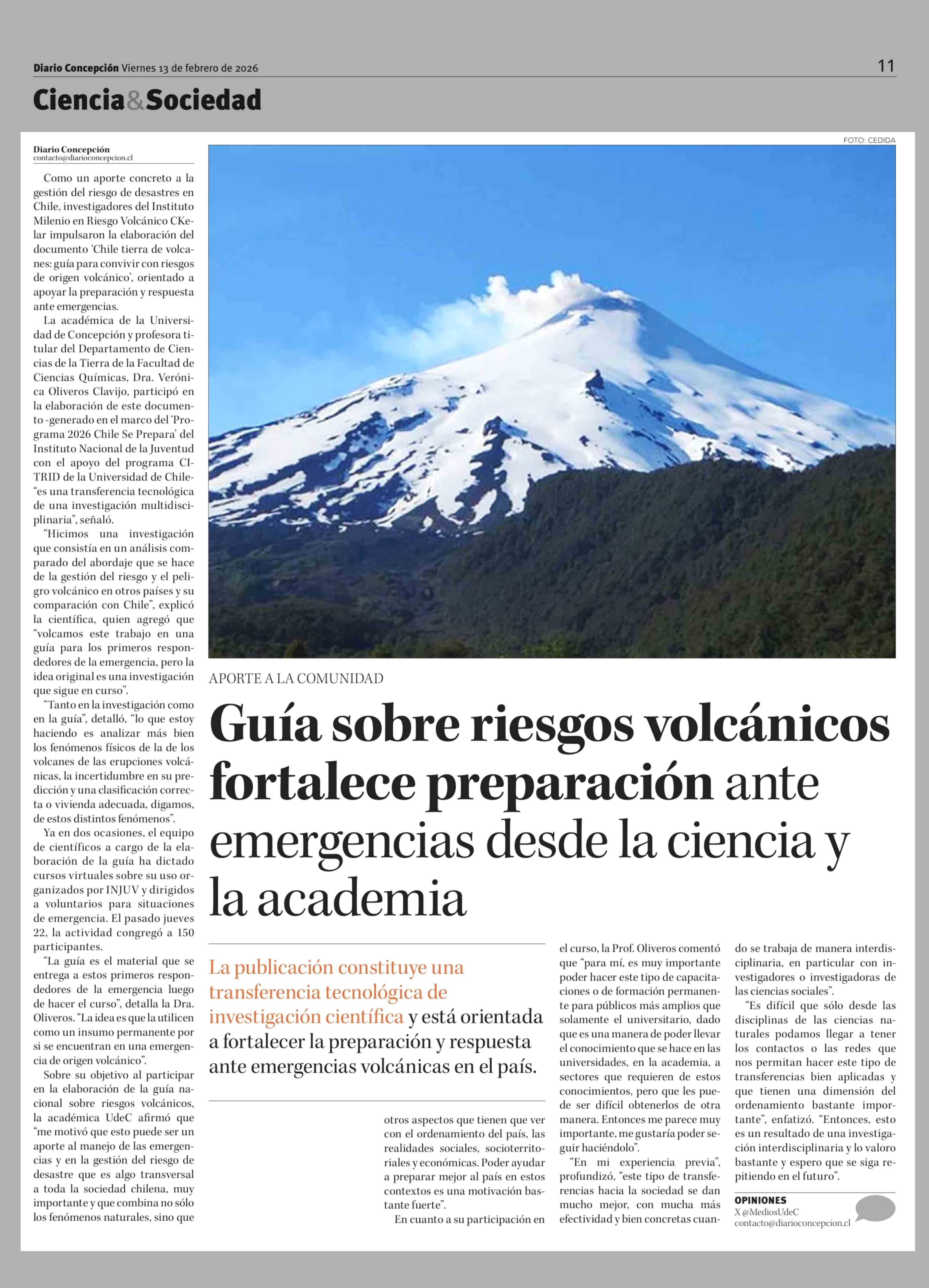 Guía sobre riesgos volcánicos fortalece preparación ante emergencias desde la ciencia y la academia 13-02-2026 Diario Concepción |